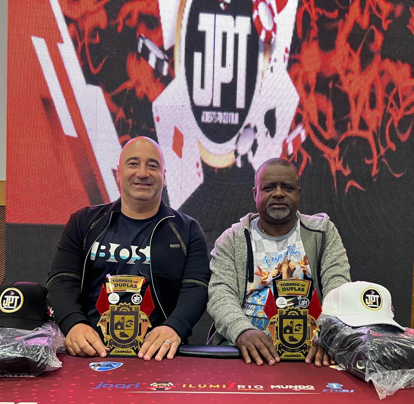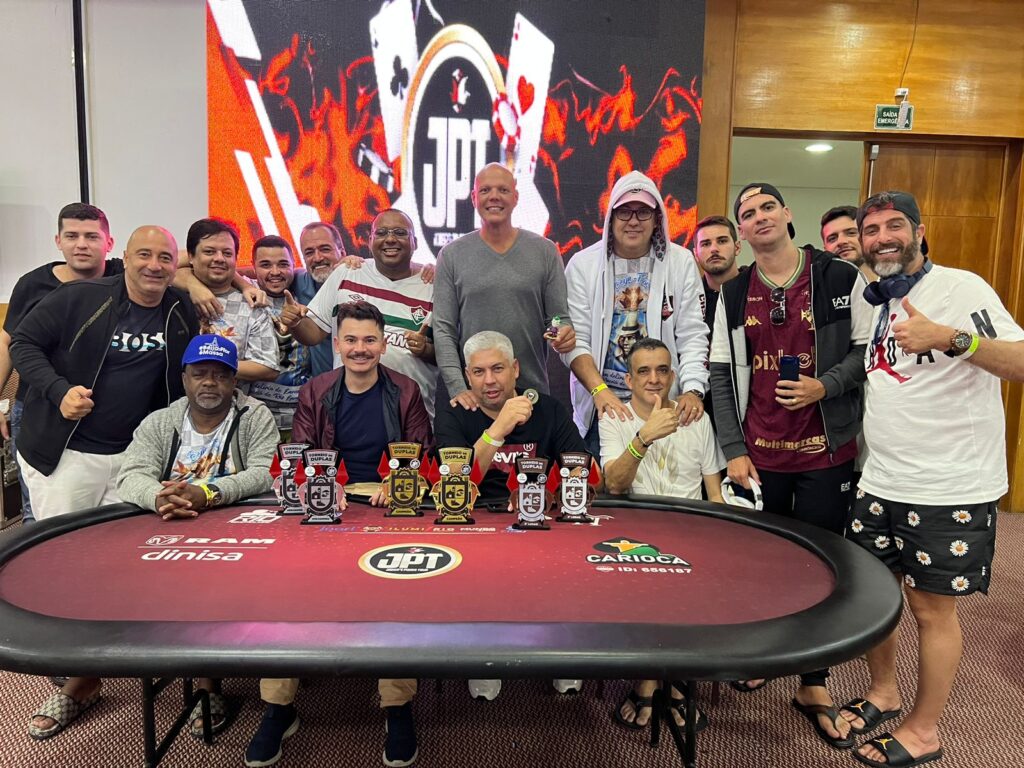 Bem próximos, o presidente da Beija-Flor e Wendel Cader, nome bem conhecido do JPT, engataram no torneio quando ainda estavam no HR One Day. Assim, além de pegar o formato diferente que fez vários jogadores se divertirem, eles precisaram atravessar o salão de um lado a outro para dar seguimento no jogo. No final, tudo deu certo e ambos comemoraram.