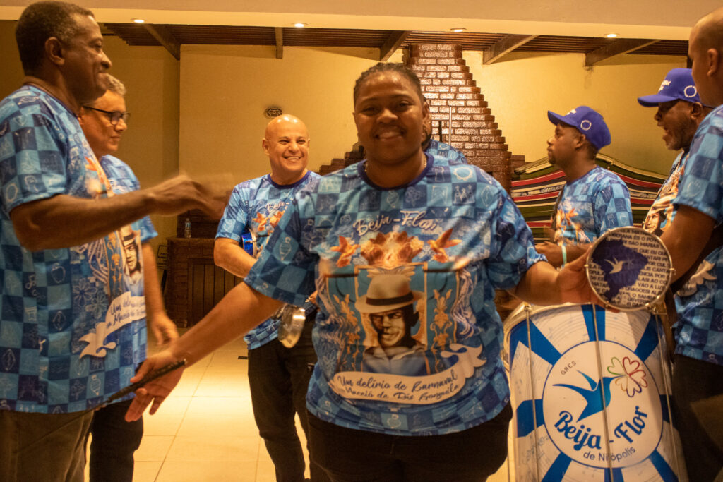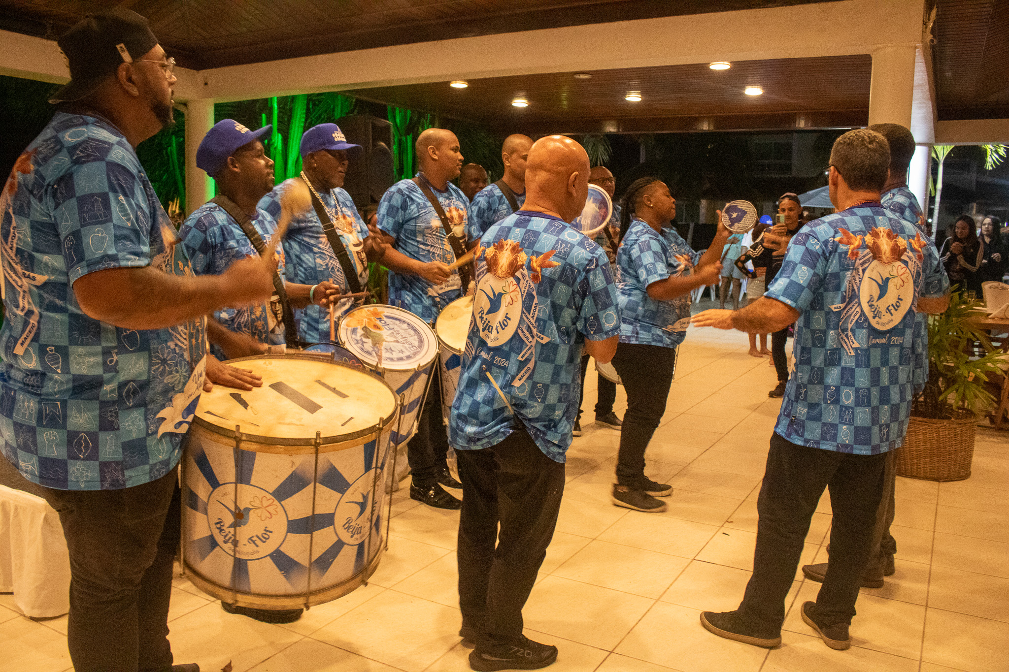Bateria da Beija-Flor “invade o salão” do JPT e dá o tom do clima festivo dos jogadores em Búzios