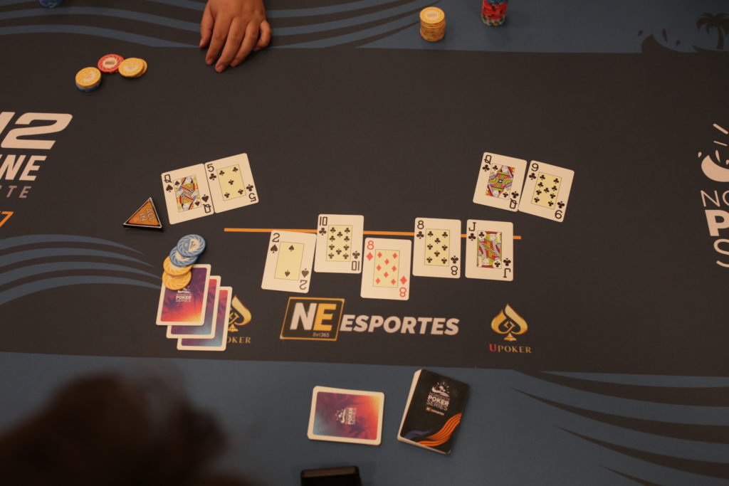 O board correu para formar o straight flush. Assim, 47 jogadores garantiram o prêmio de R$ 1.700, enquanto o campeão vai levar R$ 60.000.