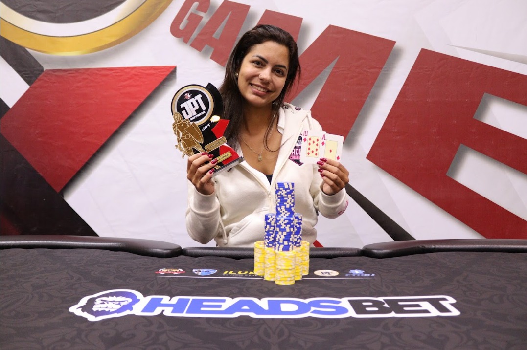 Hellen foi a grande campeã do torneio Ladies da primeira etapa do JPT e iniciou a série de forma sonhada. A carioca deixou pra trás um bom field de 34 entradas no torneio de R$ 250 e garantiu o retorno de R$ 1.800 valor definido após um acordo na mesa final. De quebra, a campeã conseguiu o bonito troféu do torneio para levar para casa, seu primeiro ao vivo.