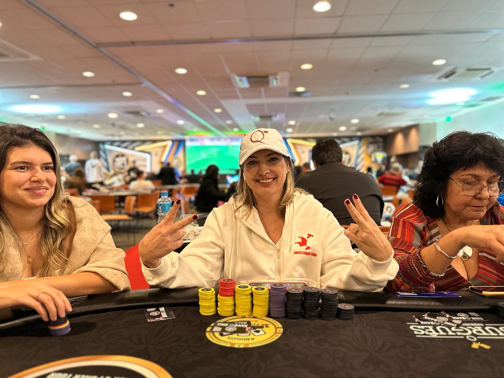 Entre as jogadoras ainda na disputa está Vânia Leite. Esposa de Carlos Moreira, sócio, Vânia é uma das maiores entusiastas do torneio feminino e faz questão de jogar todos eles. Ela praticamente cresceu no poker por conta dele e ver o resultado alcançado evento após evento é sinônimo de alegria para a jogadora.