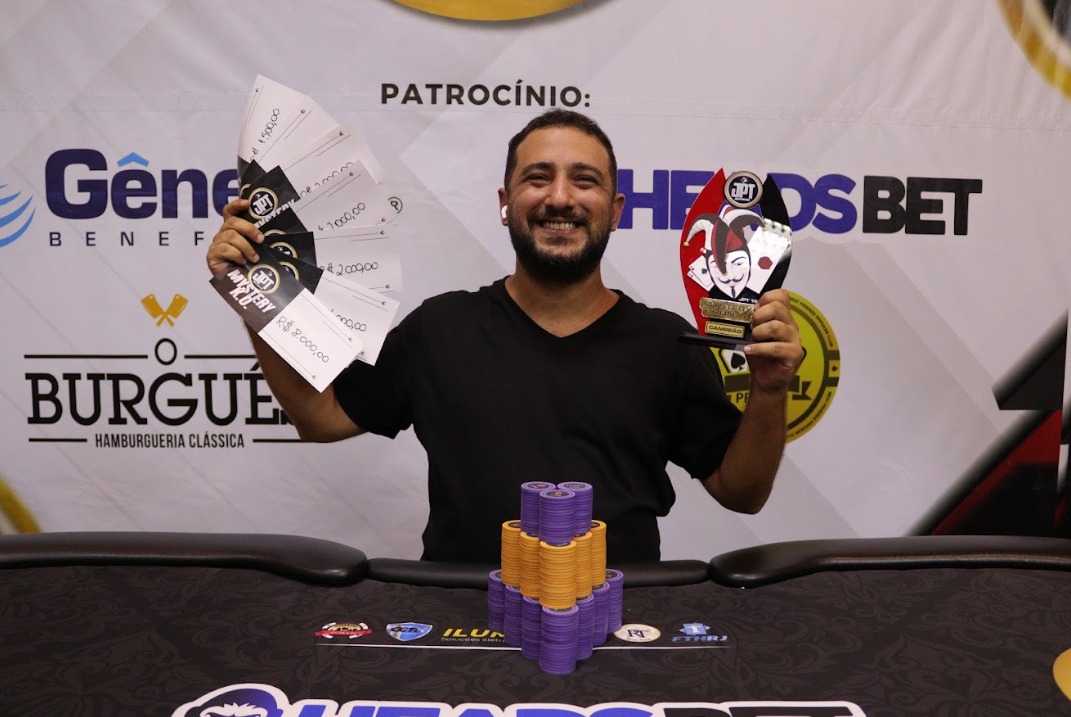 O sábado foi o principal dia do JPT nesta primeira etapa e os jogadores puderam escolher entre diversas boas opções para jogar. Um dos torneios disponíveis era o Mystery Bounty, com o formato que ganhou o mundo, e foi exatamente esta a competição que rendeu um título e uma festa enorme para o carioca Plínio Figueiredo.