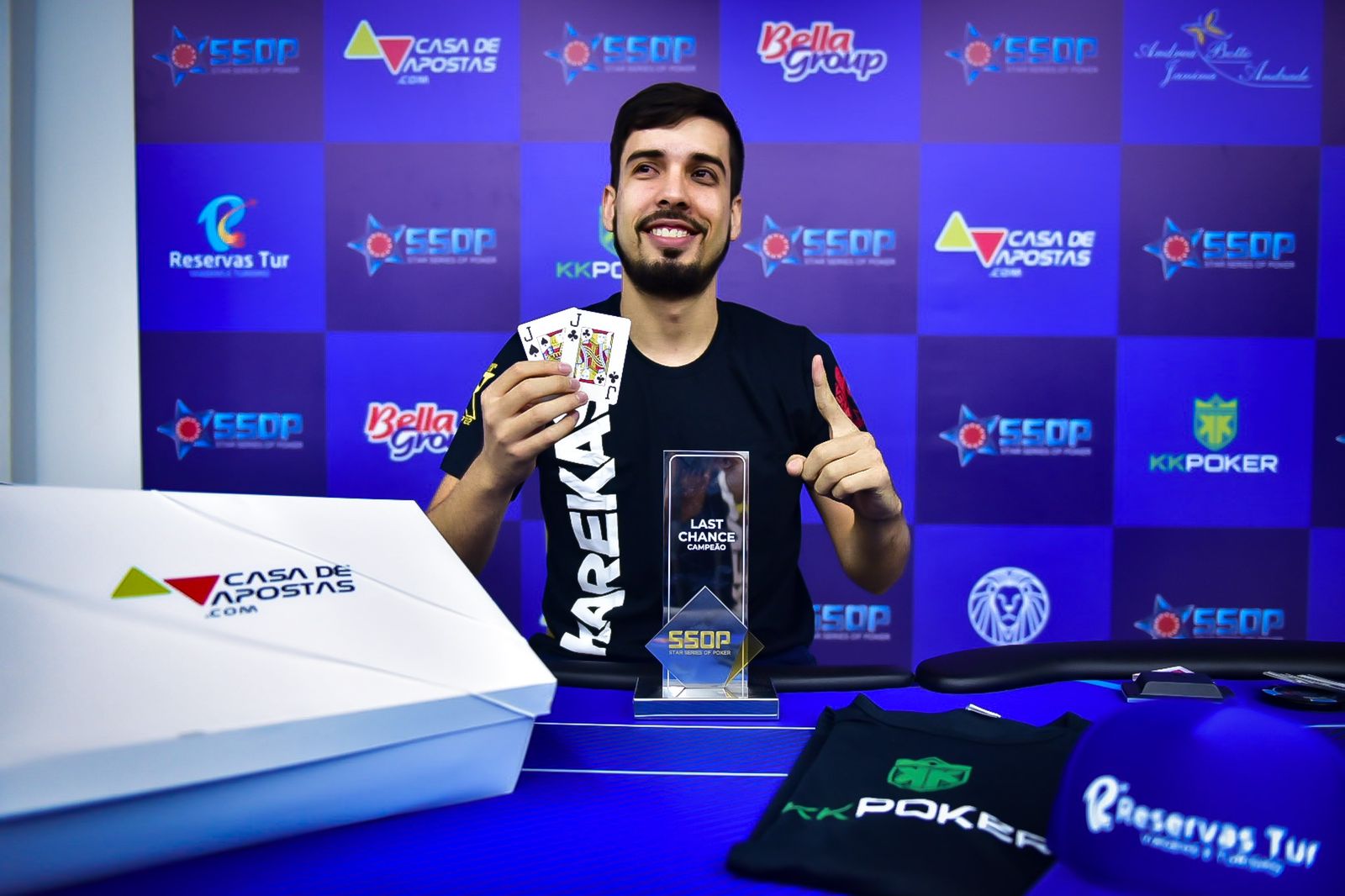 “Segundo os comentários, o Last Chance é o torneio dos desesperados. Mas é o que salva, né? Tô muito feliz pela conquista, pelo troféu. Não é nem menos nem mais importante que as outras, eu trato todos os torneios, seja de R$ 50 ou de R$ 2.000 da mesma forma, quero ganhar todos. Tô muito feliz, muito mesmo”, fala o jogador.