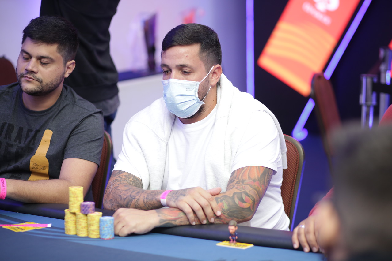 “O jogador que estava no heads-up tinha muita ficha desde o início. Eu também cheguei a ficar bem de stack, mas ele assumiu a liderança novamente e fez muitas fichas logo no começo. Então ficou muito grande e passou a pressionar bastante a mesa. Tinha três jogadores muito curtos, que estavam segurando bastante o jogo. Eu tive que esperar um pouco. O bom é que ele estava à minha direita, então esperei os momentos certos. Nos poucos folds dele, eu aproveitava para jogar e pelo menos me manter com um stack saudável, pensando em chegar competitivo no heads-up, sem ficar curto. Consegui puxar um pote importante, acho que até fora de posição, em um blefe contra ele, que acabou passando. Isso me deixou bem de ficha, e a gente chegou ao heads-up praticamente empatado”, contou.