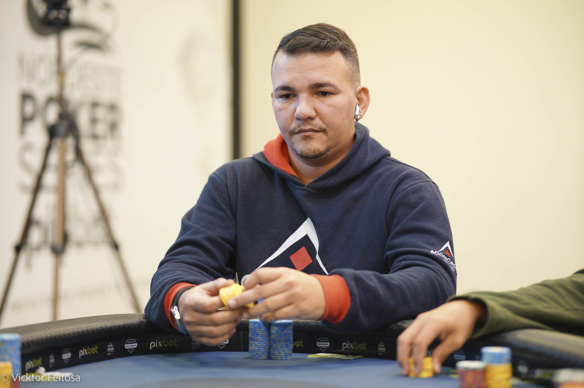 “O jogador que estava no heads-up tinha muita ficha desde o início. Eu também cheguei a ficar bem de stack, mas ele assumiu a liderança novamente e fez muitas fichas logo no começo. Então ficou muito grande e passou a pressionar bastante a mesa. Tinha três jogadores muito curtos, que estavam segurando bastante o jogo. Eu tive que esperar um pouco. O bom é que ele estava à minha direita, então esperei os momentos certos. Nos poucos folds dele, eu aproveitava para jogar e pelo menos me manter com um stack saudável, pensando em chegar competitivo no heads-up, sem ficar curto. Consegui puxar um pote importante, acho que até fora de posição, em um blefe contra ele, que acabou passando. Isso me deixou bem de ficha, e a gente chegou ao heads-up praticamente empatado”, contou.