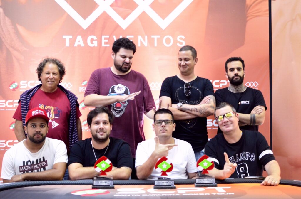 Depois de algumas viradas e liderança para os dois lados, o “Palhoça” finalmente conseguiu se impor. Em uma hora só de HU, Eduardo fechou o SCPT com um all in pré-flop segurando AA e, com a melhor mão do jogo, se tornou bicampeão exatamente no torneio de encerramento de uma histórica etapa do circuito.