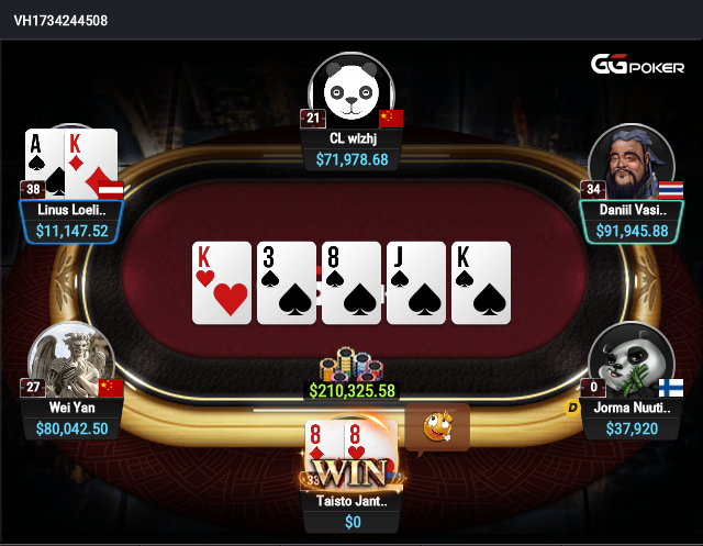 Duelo de lendas: Taisto Janter acerta full house “perfeito” contra flush nuts de Linus Loeliger e puxa US$ 210K na GGPoker