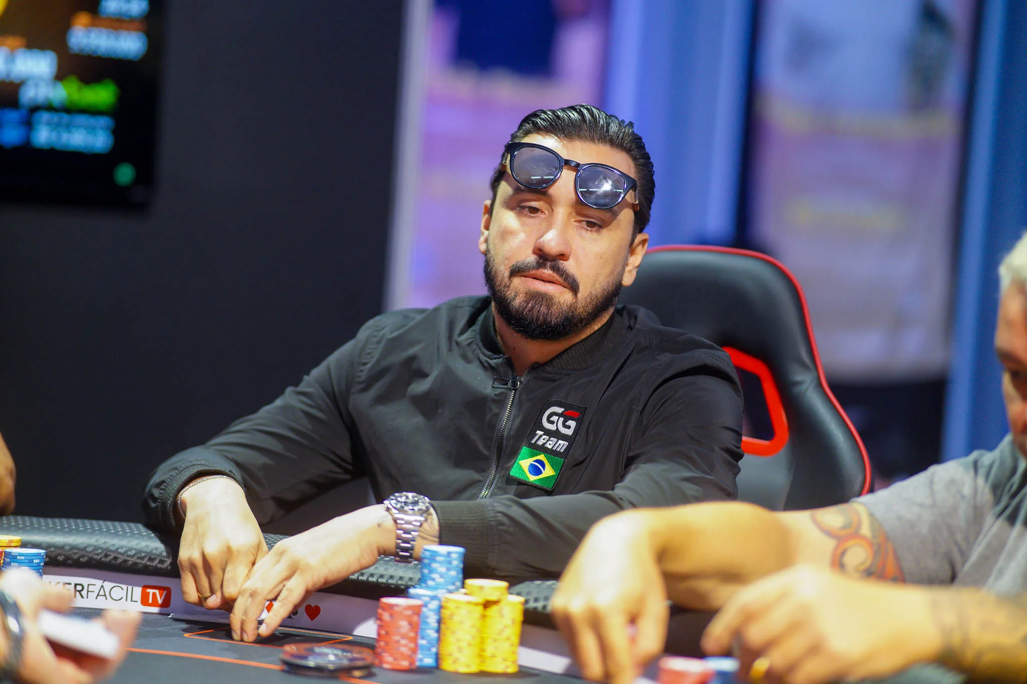 Os compatriotas ainda tinham chances, mas o turn e o river confirmaram mais uma vitória para o “Catholão”. A galera do chat, em clima de zoeira, não perdoou: “mijada remunerada”. Quando Elvis retornou, o show de all ins recomeçou, e ele imparável, aumentando ainda mais seu stack e chegando à impressionante marca de 2.500 big blinds.