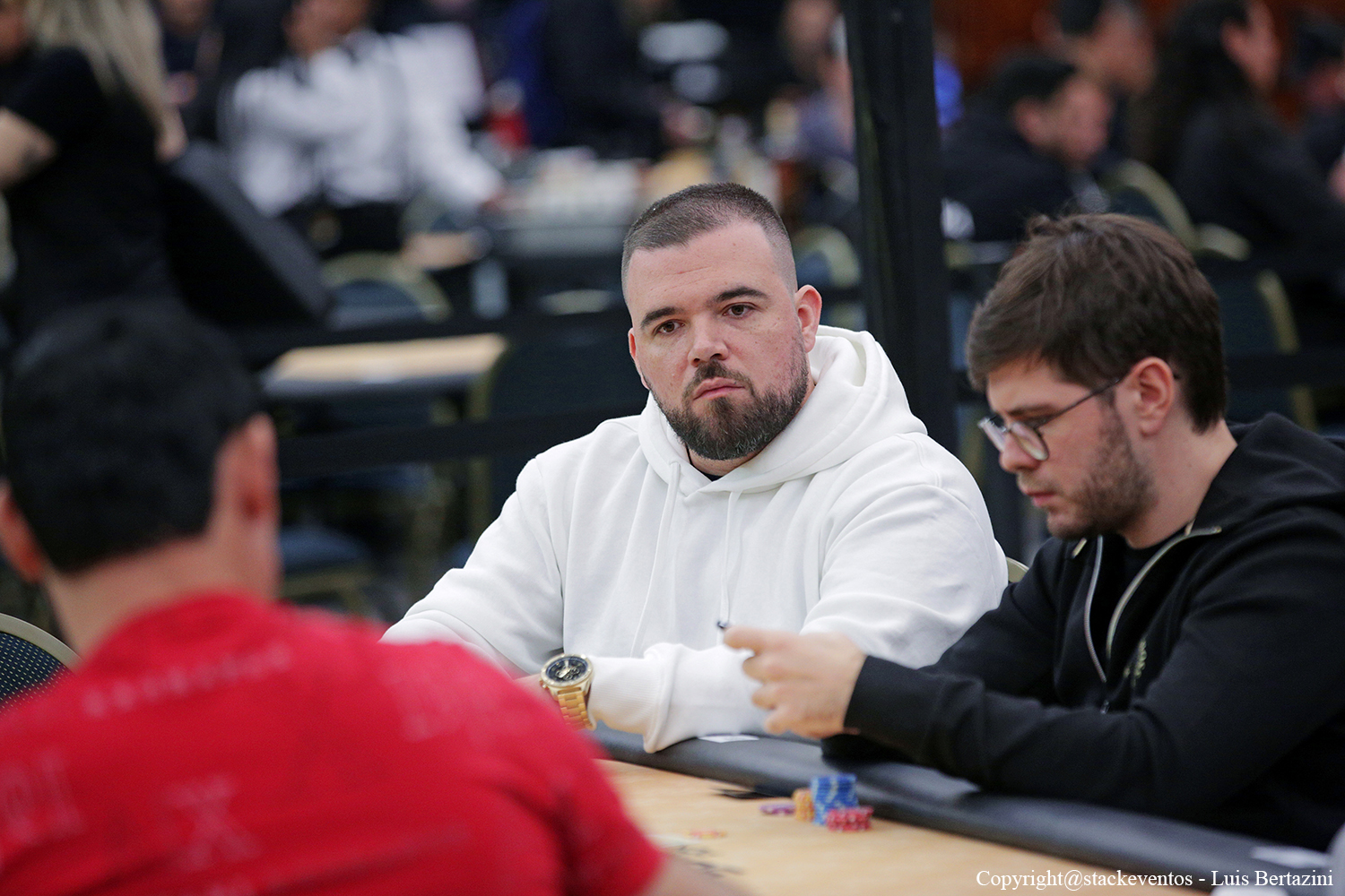 “MadMan88” desistiu, mas o jogador do Samba Team prontamente deu o call com AA e viu que o rival tinha tentado armar uma trap com KK. O board segurou sem sustos e o pote fez Padilha ficar com 15.283.674, quase o dobro de fichas do segundo colocado. Depois disso, a sequência da mesa final foi com o brasileiro o tempo inteiro na primeira colocação.