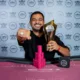 Encerrando o boletim de terça na GGPoker, João Venturelli, que comanda o nick “msxiter”, foi o último destaque. O grinder jogou o US$ 25 Bounty Overload, ao lado de 6.957 jogadores, em quase oito horas de jogo. O regular nacional superou seus rivais e alcançou o título, adicionando US$ 16.162 ao seu bankroll.