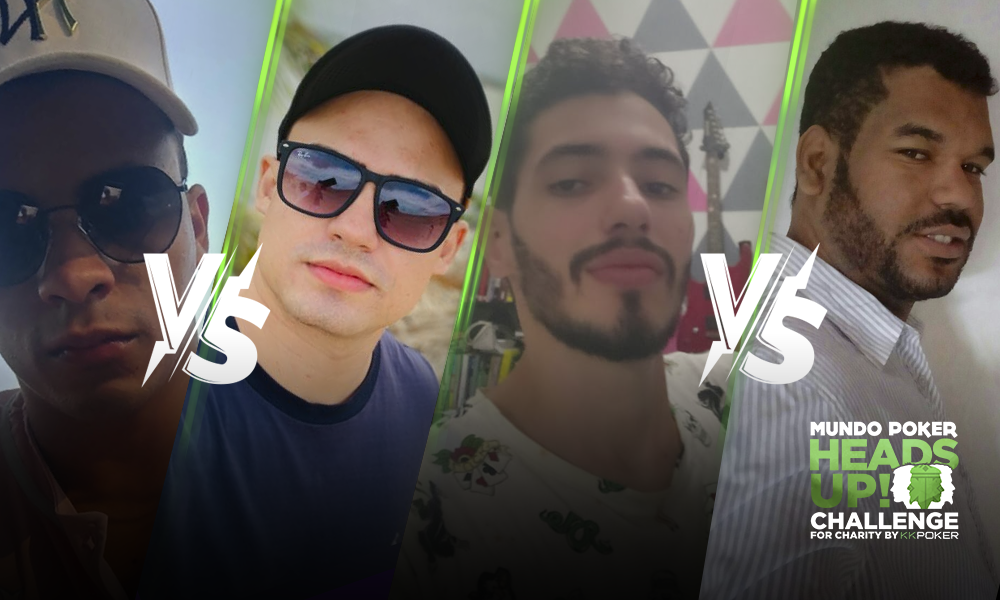 O último ato para a conclusão dos 16 participantes do Mundo Poker Heads-Up Challenge for Charity by KKPoker vai acontecer nesta quinta-feira às 19 horas. Os quatro vencedores da primeira fase (dois Freerolls e dois torneios de US$ 5) vão disputar as finais valendo duas vagas no projeto. OS vencedores serão os “Jogadores Mundo Poker”.