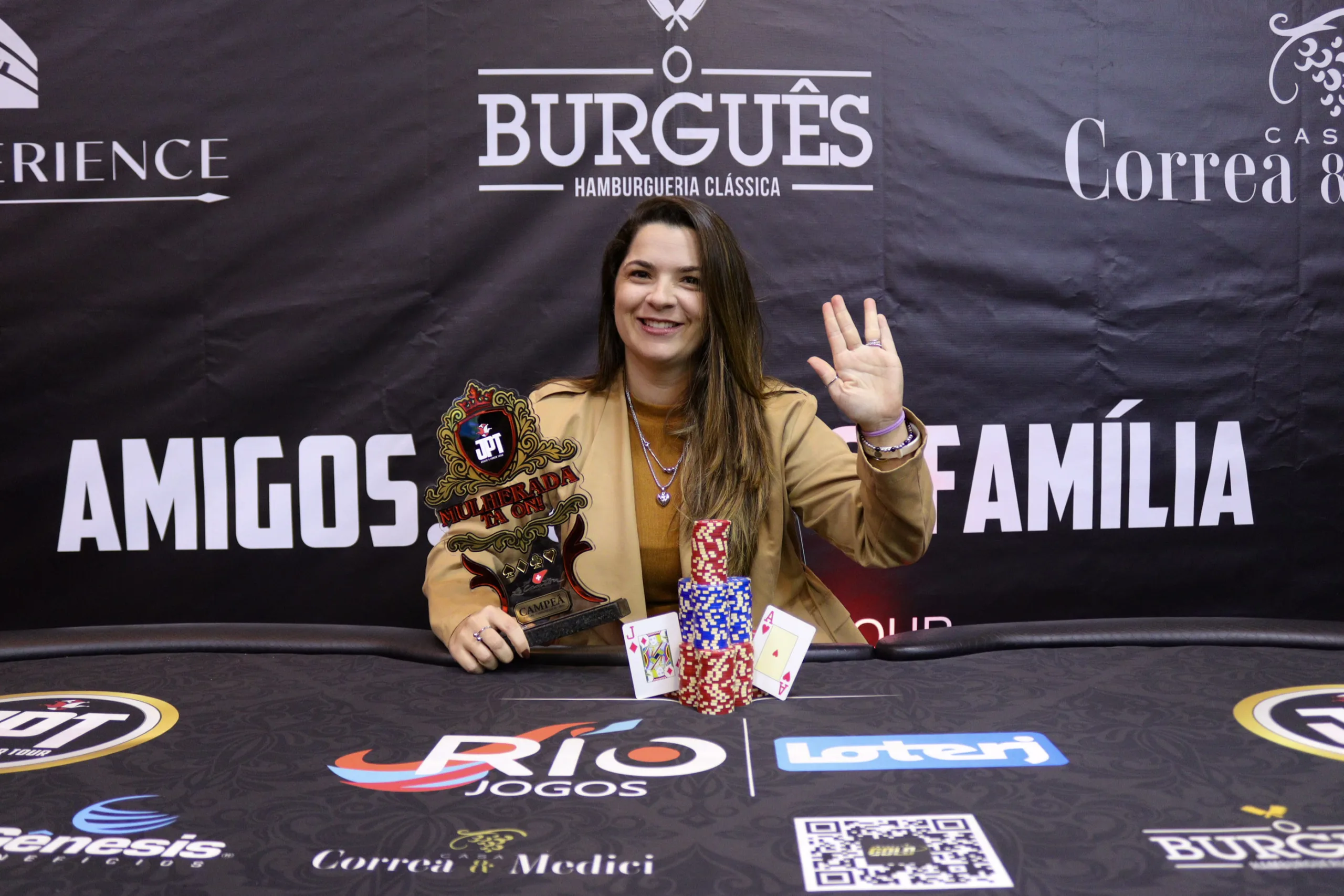 “Eu queria primeiro agradecer ao JPT e ao Temperine, porque ele incentivou muito pra nós viéssemos. Fazia um bom tempo que a gente não vinha até aqui e lembrei o quanto é bom estar aqui com as pessoas, com os amigos. O ambiente é muito familiar e eu gosto muito de jogar o JPT, principalmente os Ladies. Me diverti muito com elas e tô muito feliz por ganhar”, descreveu Stella.