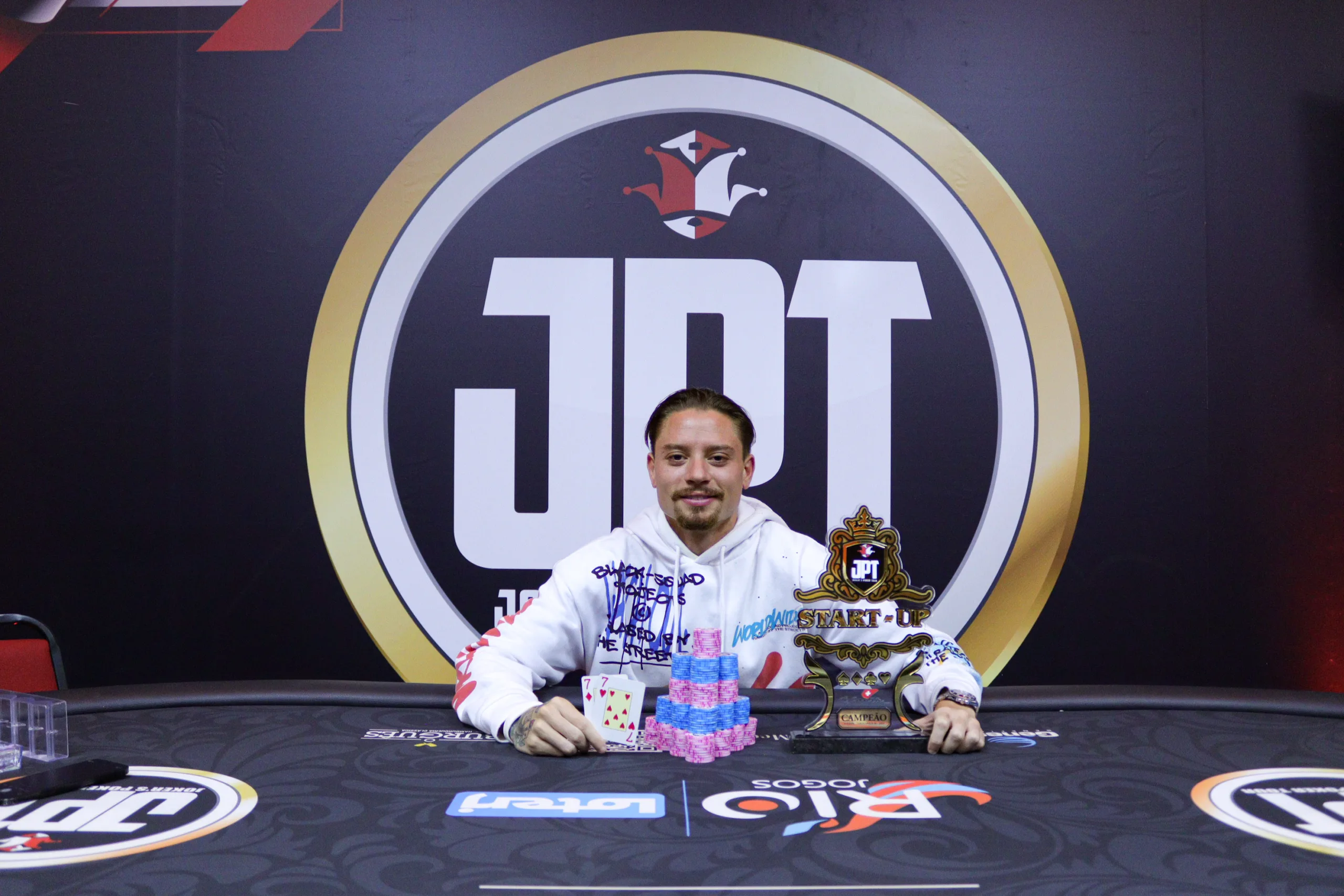 Participando do JPT pela primeira vez, Adryan teve uma estreia triunfal e conquistou o título do seu primeiro torneio jogado. No Start Up, o torneio de abertura da grade, o ex-Flamengo mostrou que está afiado no poker e levou a melhor sobre um field total de 134 entradas, saindo campeão do torneio.