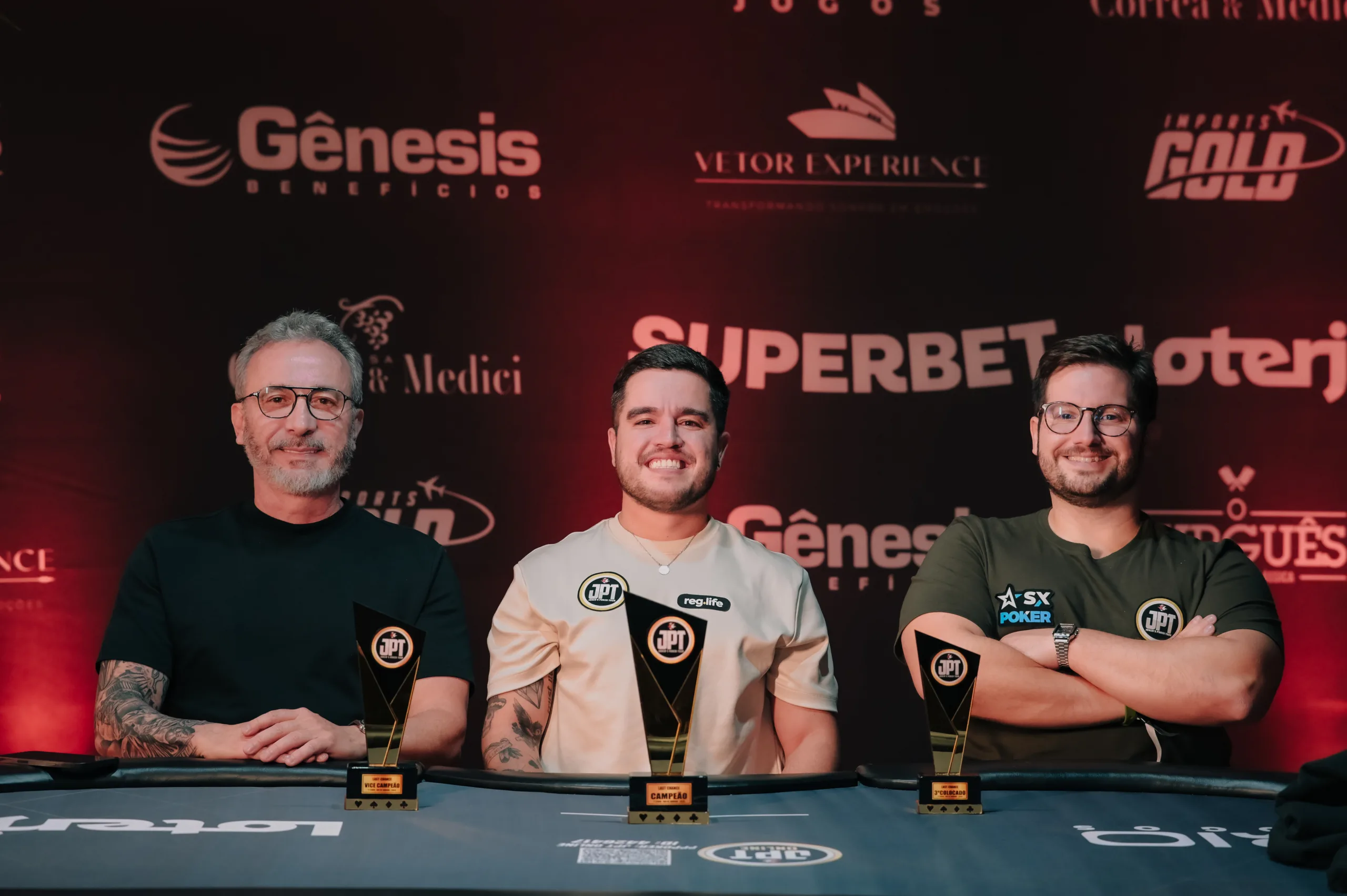 Thales: Com certeza. Eu tô pra ir lá pra minha cidade ainda, pra ver minha família, comemorar com eles e tal, mas em ambiente de poker, com certeza, o JPT é o melhor lugar pra comemorar isso. Fui muito bem recebido, como sempre. Recebi parabéns de todo mundo aqui, então, fiquei muito feliz. Toda mesa aqui, eu volto a mão, perguntam e falam sobre isso, tá sendo bem legal. E eu sempre falo: pra jogar poker live, não tem nada igual ao JPT.