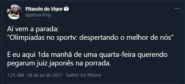 Na semana passada, Peter Patrício deu show na tweet com medalhas de ouro, prata e bronze em sequência. Embalado por isso (ou não), o craque foi tomado pelo espírito olímpico. Mas não necessariamente só pela parte boa: