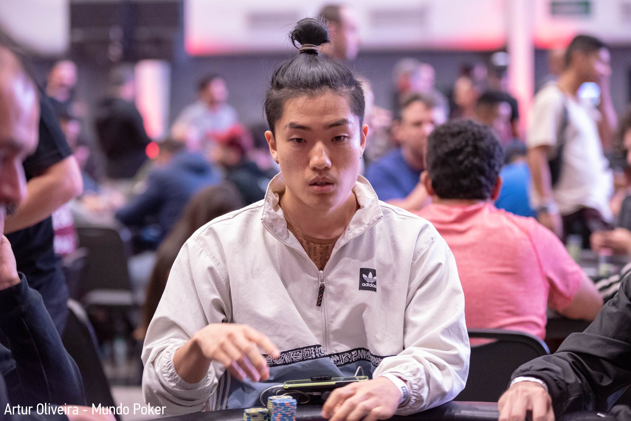 A mão em questão rolou contra o dominicano Francis Peña. Durante grande parte da mesa final, Peña foi quem dominou as ações, enquanto o brasileiro tentava sobreviver. A medida em que as eliminações chegaram—todas por conta de Aloísio—, a vantagem se inverteu. O brasileiro optou pelo limp nos blinds 300.000 / 600.000 e o dominicano optou apenas pelo check.