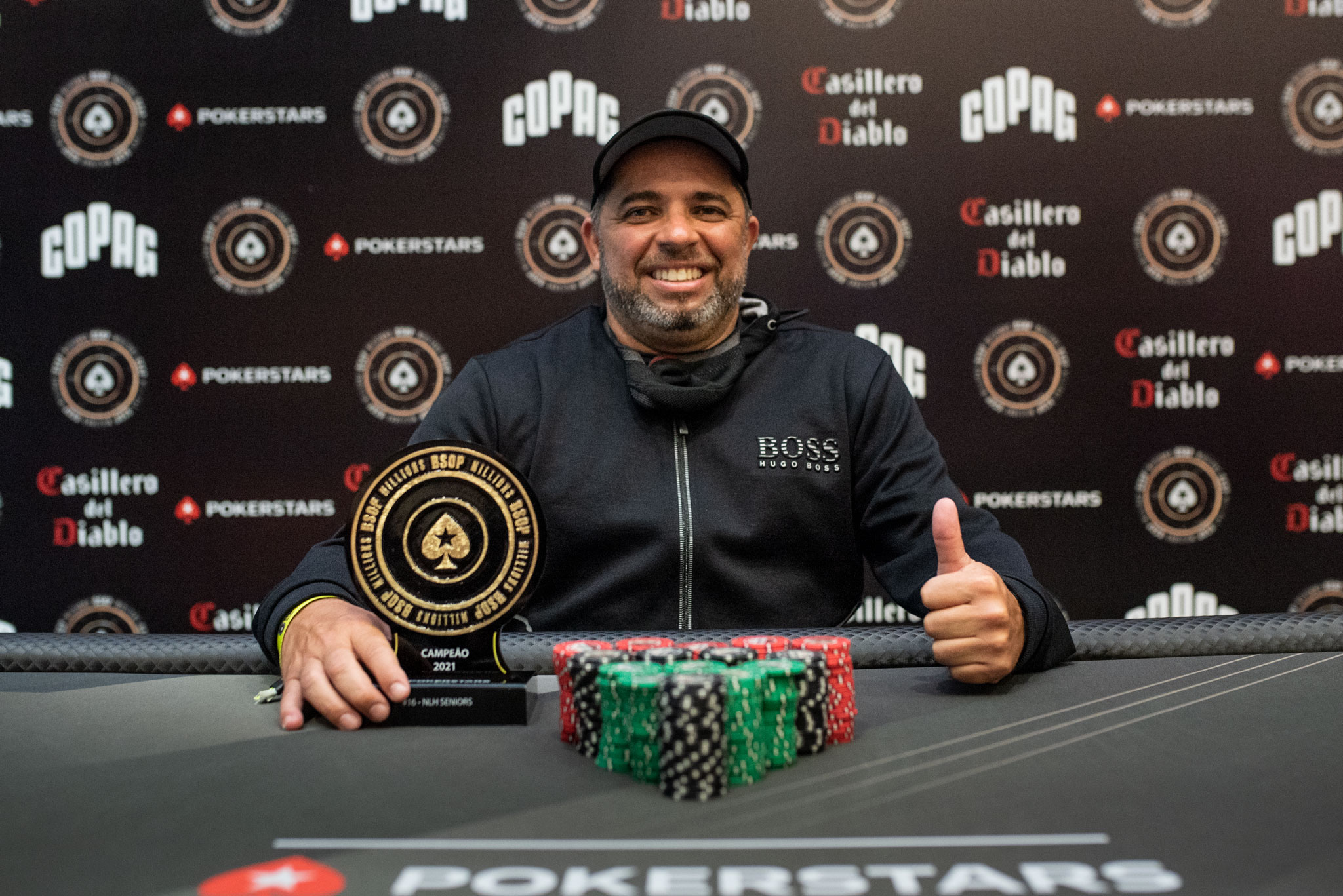“Sensação maravilhosa, torneio do BSOP e grande desse jeito, com uma bela organização. Eu saio emocionado, é o maior título que eu ganhei, eu já tive alguns troféus no H2 Club mas, esse foi muito emocionante”, disse.