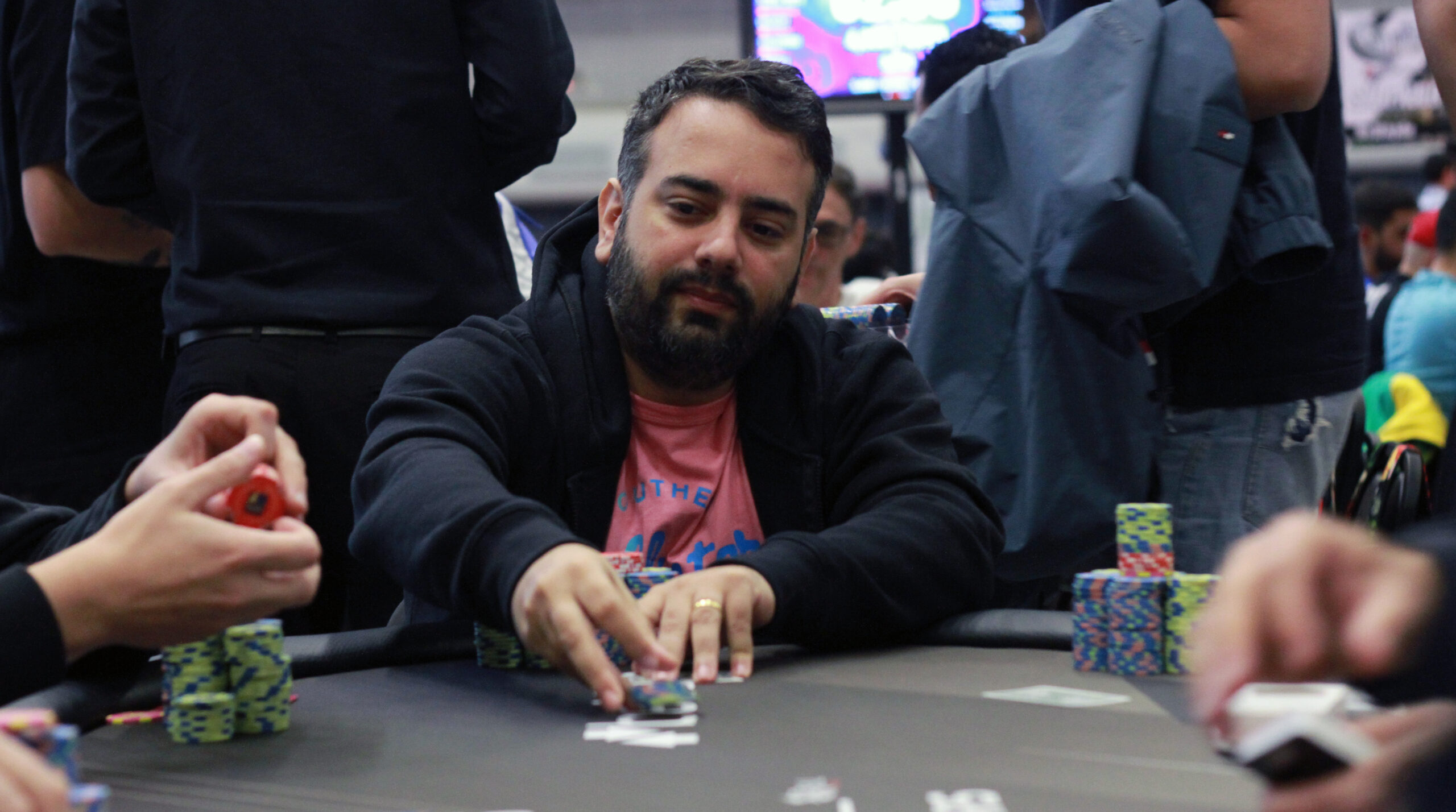 “Estou muito feliz. Estava jogando desde o primeiro High Roller, ontem bati na trave e fui o 13º, hoje eu fiquei até com um blind em quatro pessoas, fui buscando, buscando e deu certo.”