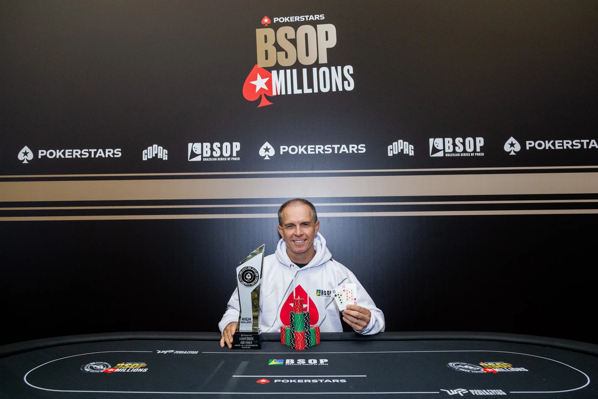 “É surreal, quando eu comecei a jogar poker em 2006, 2007, os eventos eram pequenininhos, assim, quando você tinha um fio de com 300 pessoas, era uma vitória aqui nos eventos no Brasil, e aí foi crescendo, crescendo, crescendo, e realmente foi um pulo muito grande. Se você olhar o nível hoje dos torneios do Brasil e dos jogadores do Brasil, é sensacional. Eu fico muito feliz de ter começado aqui e ver o que se transformou. É realmente muito feliz, muito prazeroso pra gente que gosta de competição e que gosta e que ama um pouco. É muito legal ver o nível que a gente chegou”, finalizou.