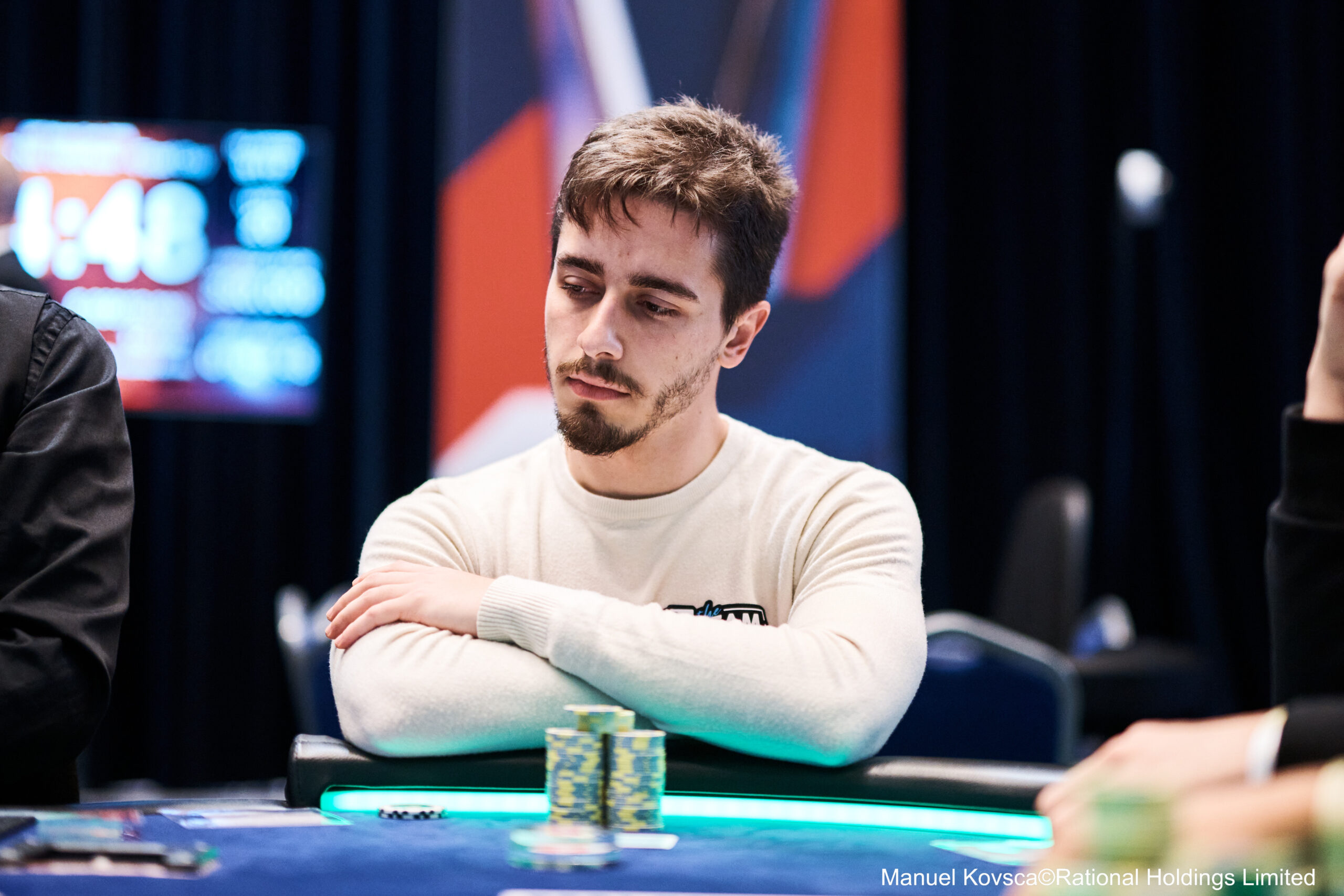 Em seguida, foi a vez do francês Thierry Gogniat anunciar o shove de 600.000 do button com , e por fim, Tomas Jozonis anunciou seu all in de 2.600.000 do big blind com . Depois de cinco jogadores envolvidos, a ação voltou para Buhaiov, que não teve problemas em foldar. A questão era mesmo Casimir Seire.
