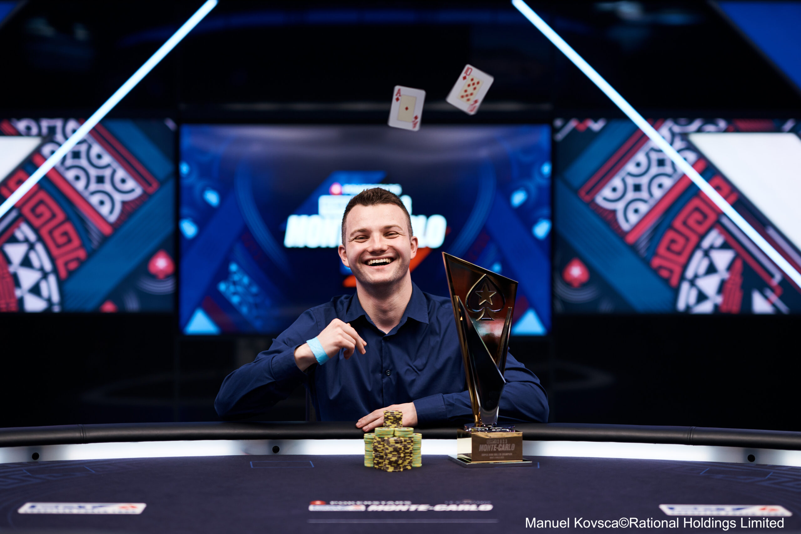 “Tive muita sorte durante todo o evento. Toda essa ocasião é muito especial para mim. É meu primeiro grande evento ao vivo e eu amo a cidade, amo o PokerStars e realmente aprecio a chance de me apresentar no palco”, falou o campeão ao PokerNews.