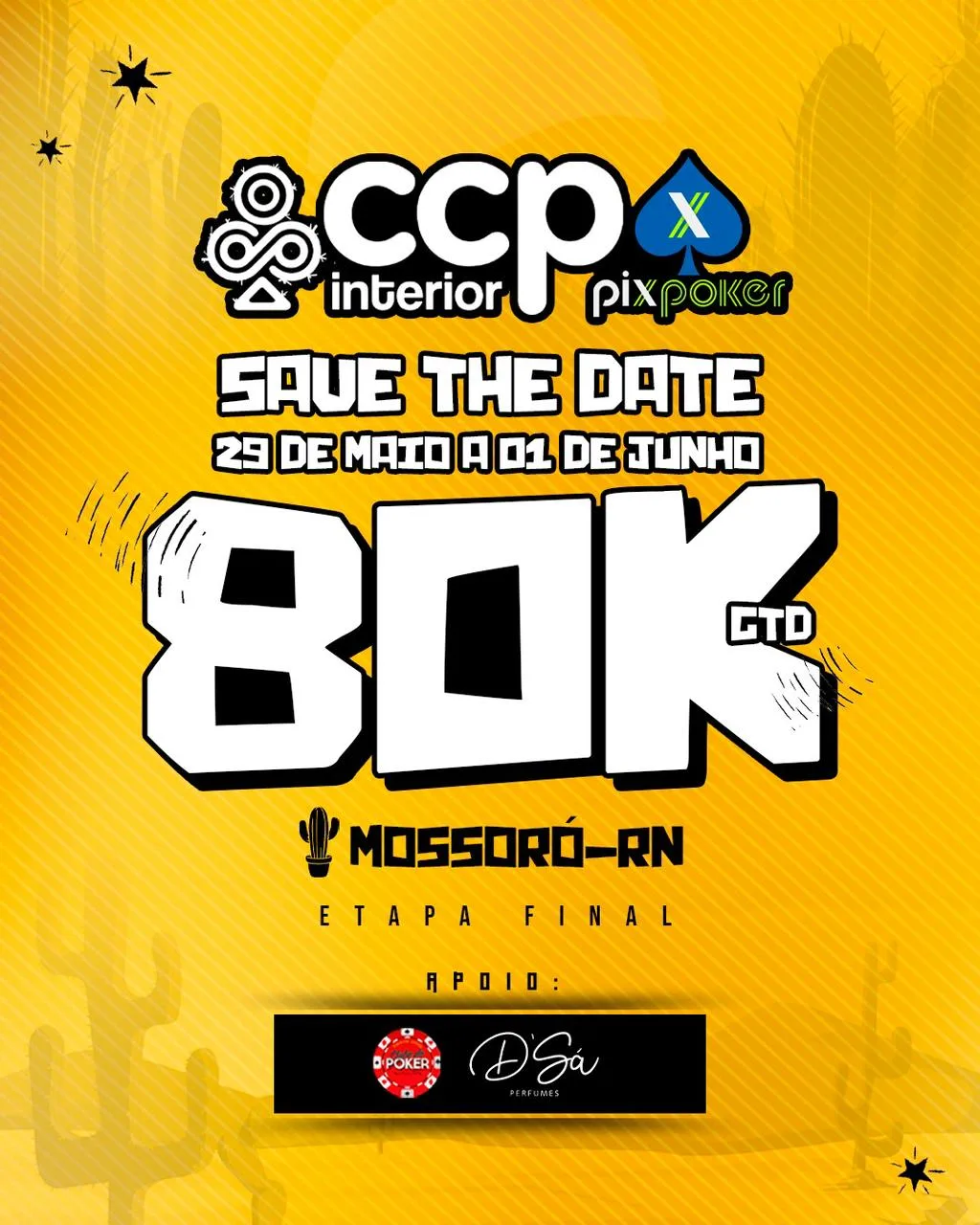 Com três belos torneios e R$ 80 mil em premiação total, o CCP Interior vai acontecer no Hotel Vila Oeste, na cidade de Mossoró, cerca de 280km de distância de Natal, a capital do estado. O hotel garante uma hospedagem tranquila para os jogadores que viajarem em busca dos prêmios.