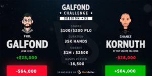 Depois de uma pequena pausa para curtir o feriado de Ação de Graças, o desafio €100/€200 PLO retornou nesta quarta-feira (02). Para a alegria de Phil Galfond, os dias de folga deram resultado positivo depois de jogar 500 mãos contra Chance Kornuth.