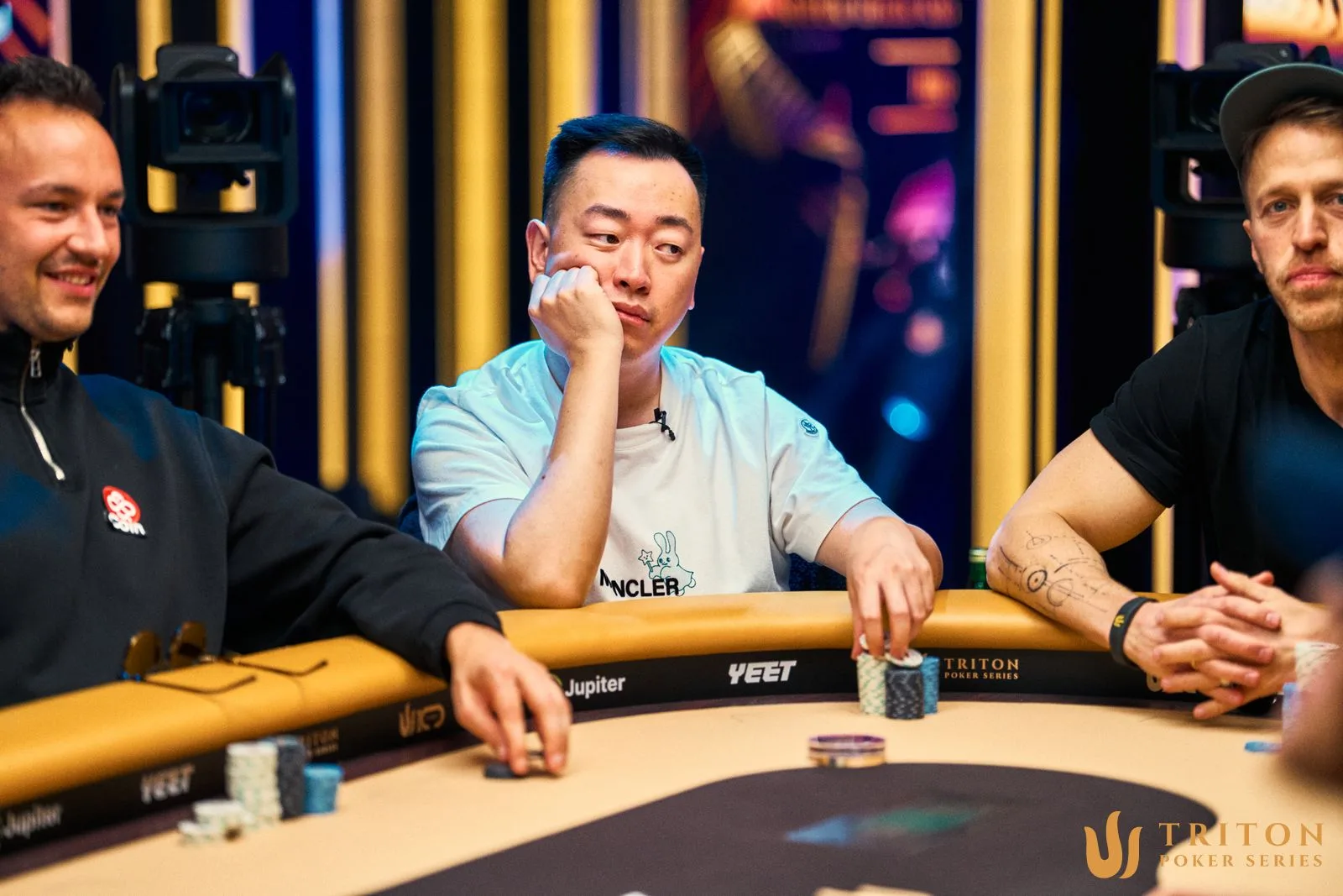 A jogada em questão envolveu dois jogadores chineses, um deles Aaron Zhang, bem conhecido nos torneios da Triton Series, e Esti Wang, o “ST”, frequentador assíduo no Hustler Casino. A mão aconteceu nos blinds de US$ 1.000 / US$ 2.000, com straddle de US$ 3.000, e foi compartilhada no X pelo jogador Adam Hendrix.