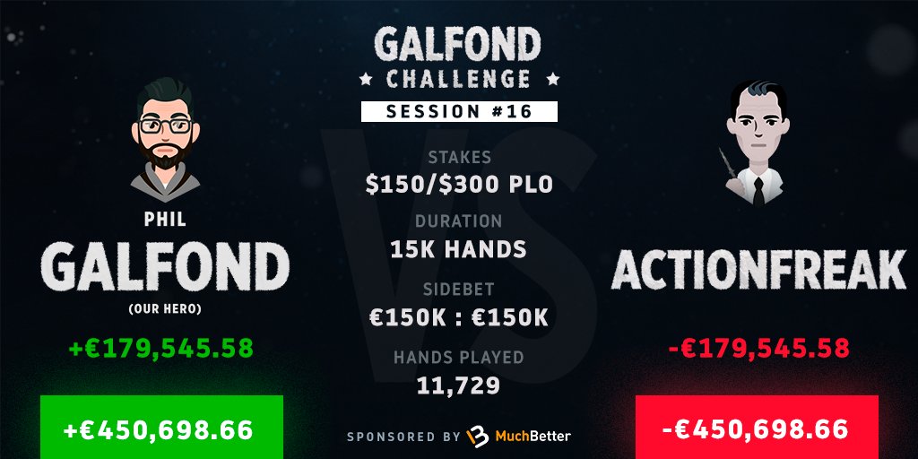 Com apenas 1.706 mãos para terminar o desafio PLO € 150/ € 300, Phil Galfond permanece na liderança contra Ioannis Kontonatsios. Neste final de semana, eles realizaram duas sessões e completaram 13.294 das 15.000 mãos.