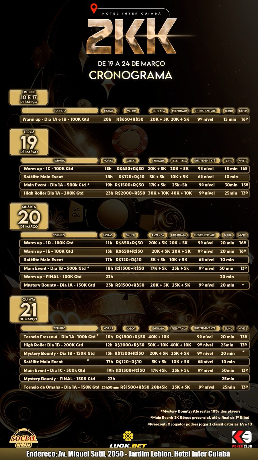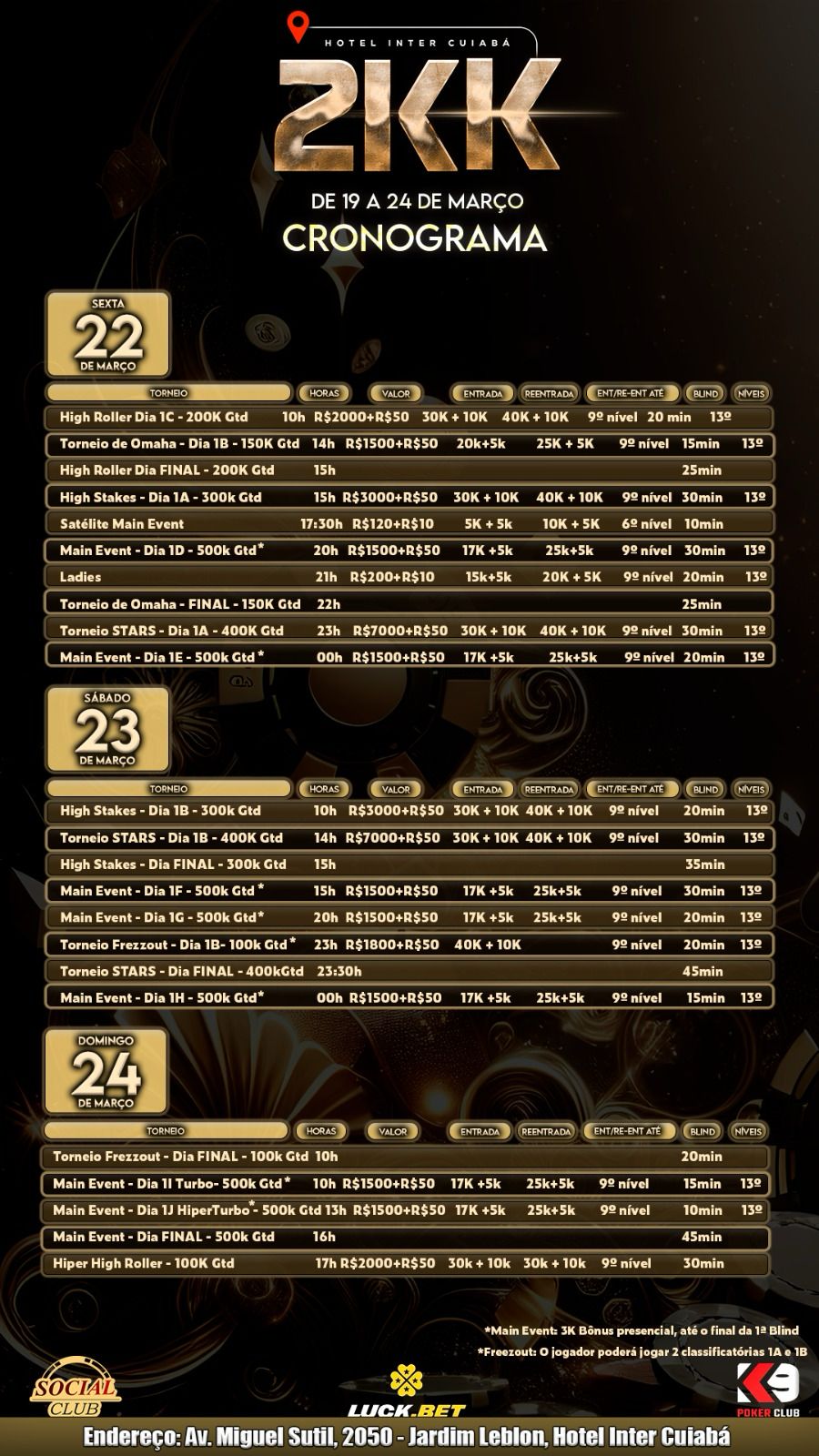 K9 Poker Club e Social Club realizam evento 2KK garantidos em Cuiabá neste mês de março; confira a grade