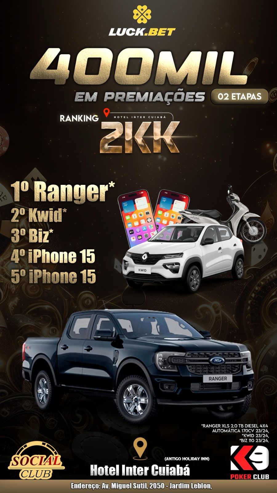 Além disso, a etapa conta com um ranking bastante valioso que distribuirá R$ 400.000 em prêmios. O campeão levará uma Ranger XLS automática, o segundo um Renault Kwid, o terceiro uma Biz e, por fim, o 4º e 5º colocados vão ser recompensados com Iphones 15.