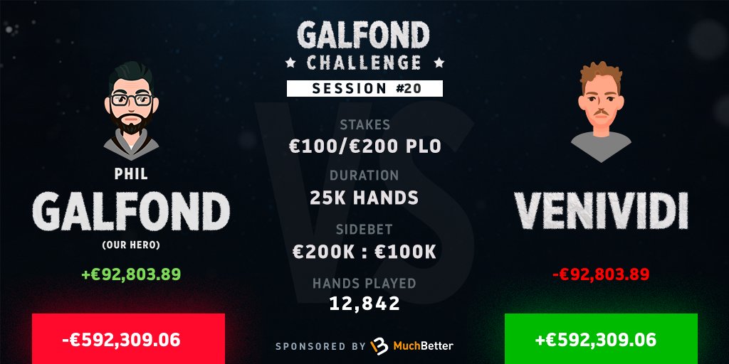 No Twitter do site de Phil, a recente vitória do especialista em Omaha foi comemorada. “Nós oficialmente cruzamos a metade do caminho! Venividi ainda está na liderança geral, mas hoje à noite, vimos @PhilGalfond gerar um lucro de € 92.803.89! Isso significa que dobraremos os ganhos de todos no Splash the Pot!”.