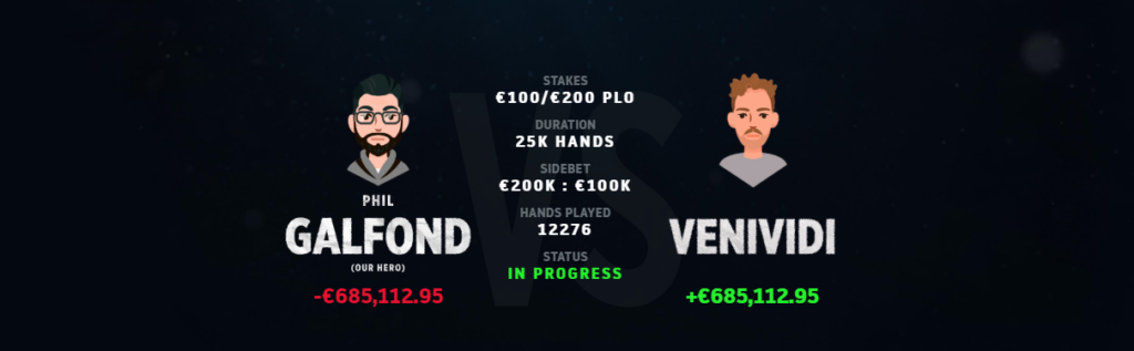 Phil Galfond continua surpreendendo no desafio contra “VeniVidi” desde o retorno da competição € 100.000/200.000 PLO após o stoploss. No sábado (07), o craque garantiu novamente a vitória contra o adversário totalizando seu terceiro ganho neste mês.