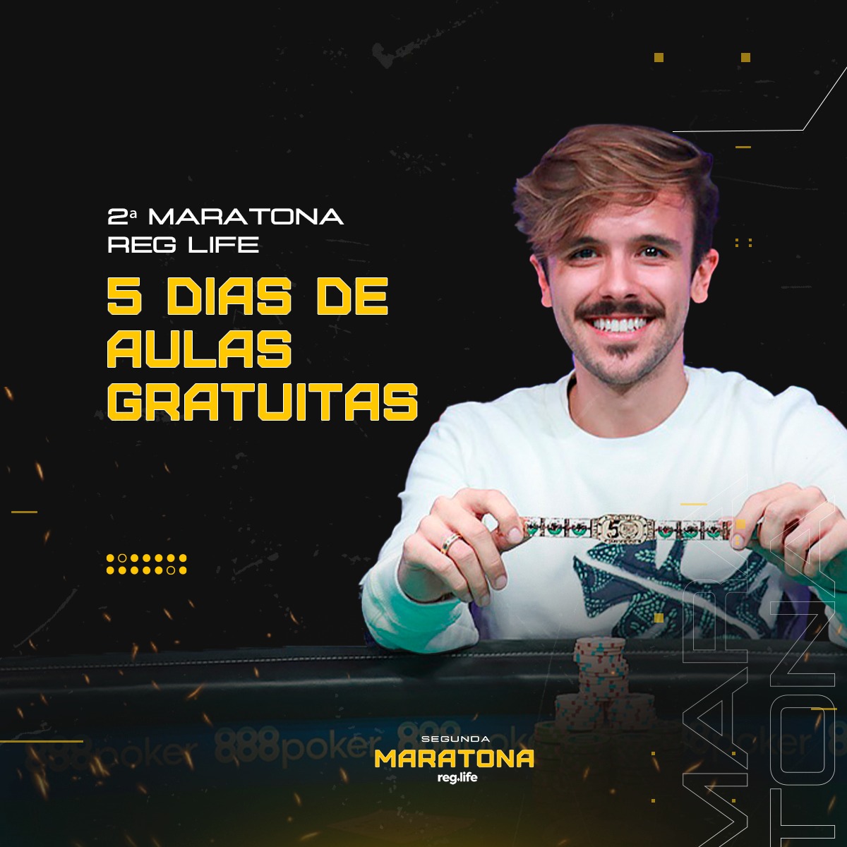 Sucesso desde a criação, a Maratona Reglife, comunidade de poker criada pelos craques Yuri Martins, Gustavo Mastelotto e Mario Junior, começa nesta segunda-feira mais uma edição de sua história. Serão cinco aulas gratuitas, uma por dia, sempre às 20h. O trio vai abordar assuntos diferentes e dar um norte para quem deseja trilhar um caminho no jogo.