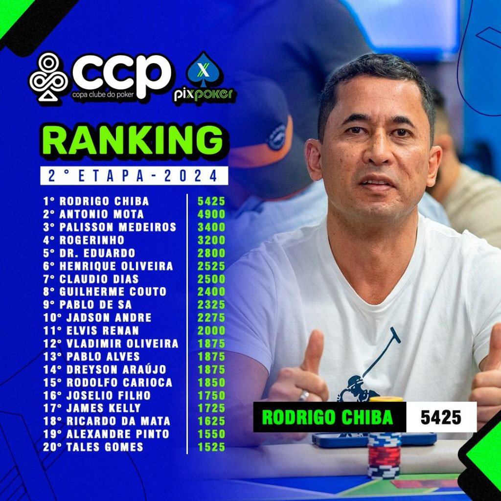 Rodrigo Chiba foi destaque nas duas etapas que contaram para o ranking de 2024 (a última de 2023 e a primeira deste ano) e recebeu por duas vezes o prêmio de melhor jogador da edição. O prêmio para o melhor jogador da etapa é um bonito anel de ouro. Será que vem o hat trick na etapa que começa hoje?