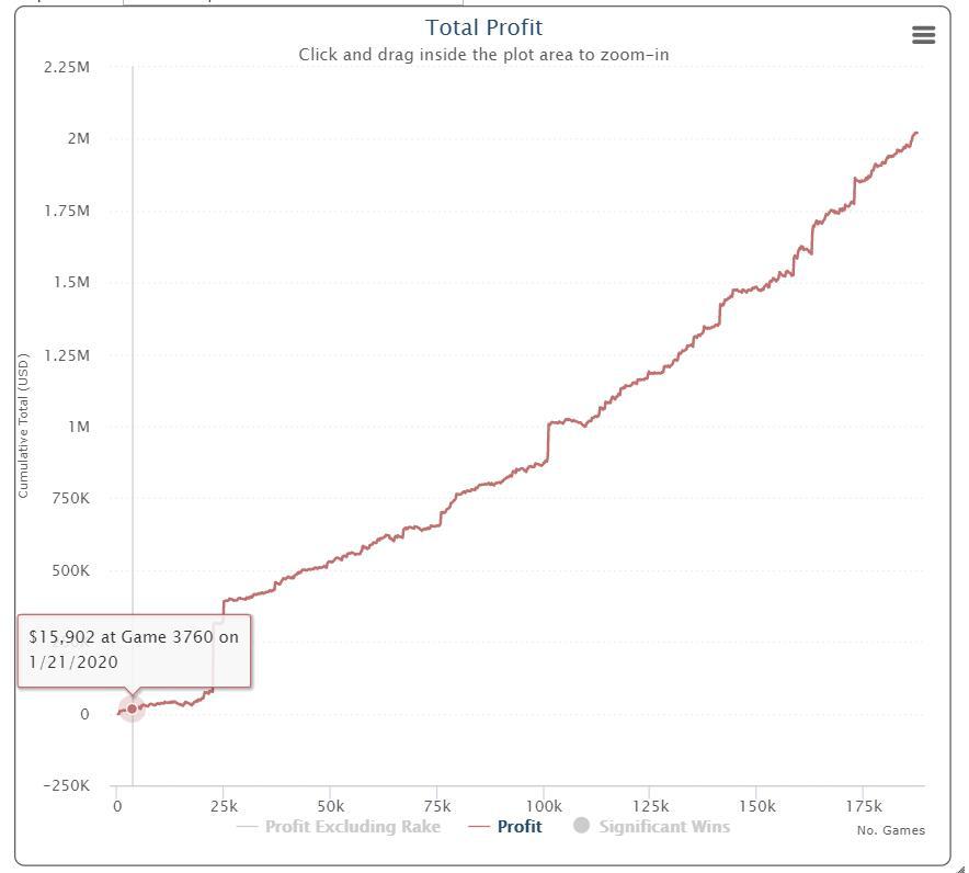 O gráfico do time do início de 2020 até cerca de seis meses do atual ano, é de impressionar. O time tem cerca de US$ 2 milhões de profit como você pode conferir no gráfico abaixo: