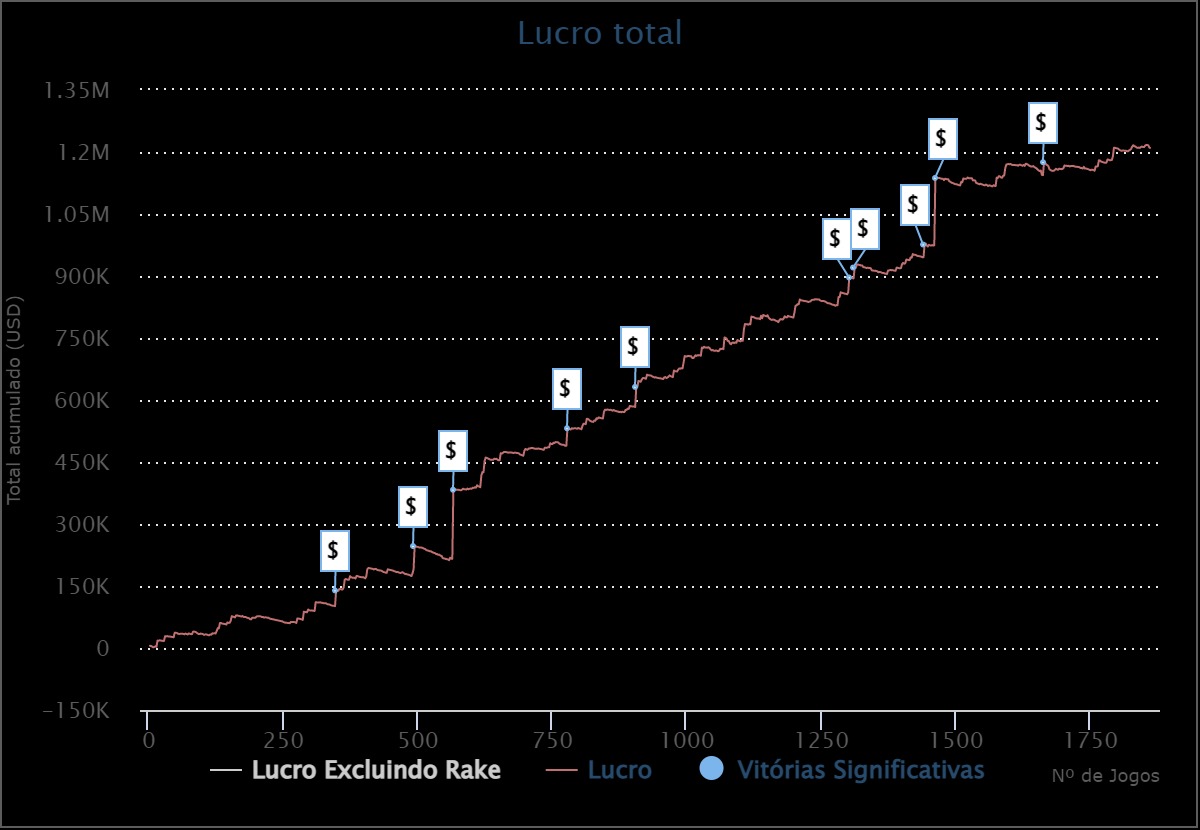 Vivendo em Las Vegas, o profissional ganhou a opção da WSOP.com para grindar a partir de 2013 e se registrou com o nick de “Panoramic”. Porém, Dunst só começou a aproveitar os torneios do site no último dia de 2018. E, de lá pra cá, ele disputou 1.861 jogos na pequena grade oferecida pelo site e possui um gráfico completamente “INSANO”.