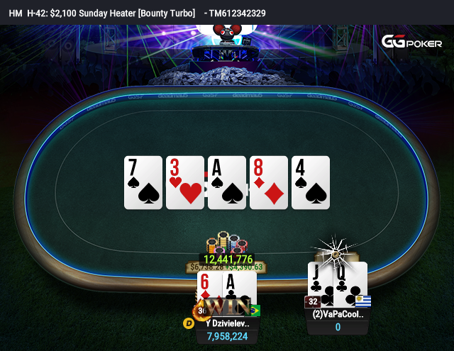 Algumas mãos depois, veio o golpe de misericórdia: o paranaense colocou o “Tomatee” do online (no GGPoker com seu nick “VaPaCooler”) na porta com A6 e levou call de JQ. Um A já veio no flop para a festa ficar completa. Festa? Certamente ele fechou a tela e voltou a focar nos outros eventos do dia, como US$ 25.500 que ainda está no páreo.