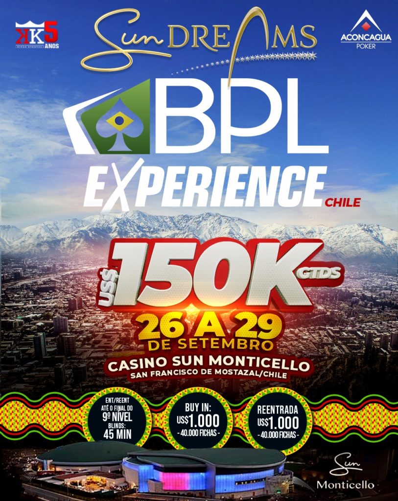 Nesta quinta-feira (26), um grande torneio com “dedo” brasileiro vai dar a largada no Chile. Trata-se do Sun Dreams BPL Experience, evento com US$ 150.000 garantidos e organizado pela Kings Eventos com dois de seus grandes parceiros comerciais. O evento será finalizado no domingo (29), dia que o grande campeão será conhecido.