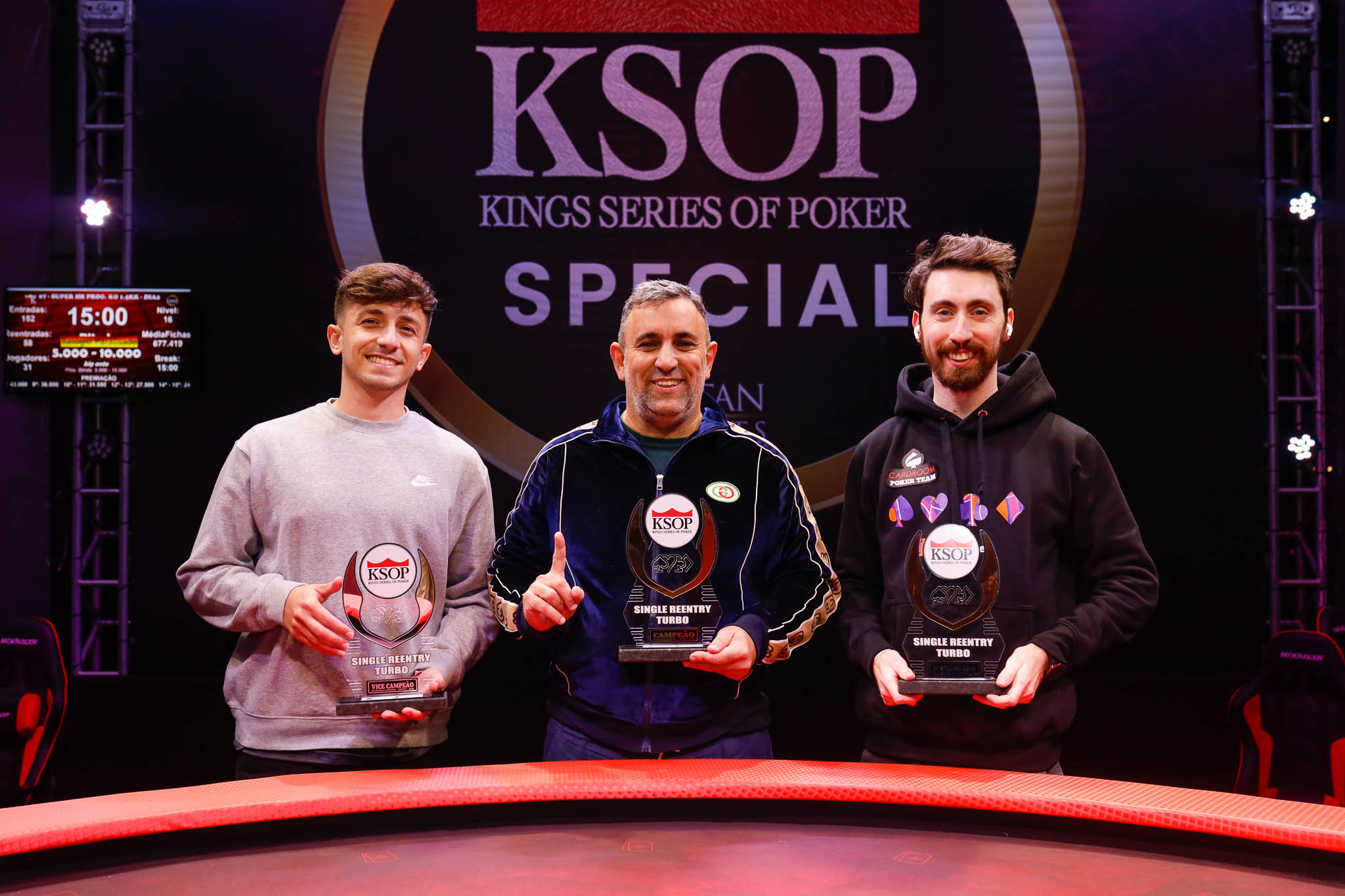“Foi bem legal, divertido, muitos amigos na mesa. A partir do momento em que a gente senta pra jogar, todo mundo quer ganhar. Hoje não foi diferente. A gente tava gastando cada segundo que tinha pra tomar as melhores decisões. Ainda foi super difícil, estou super contente. E ainda fui surpreendido com um troféu muito bonito e um anel que eu não tinha, então vamos por mais.”