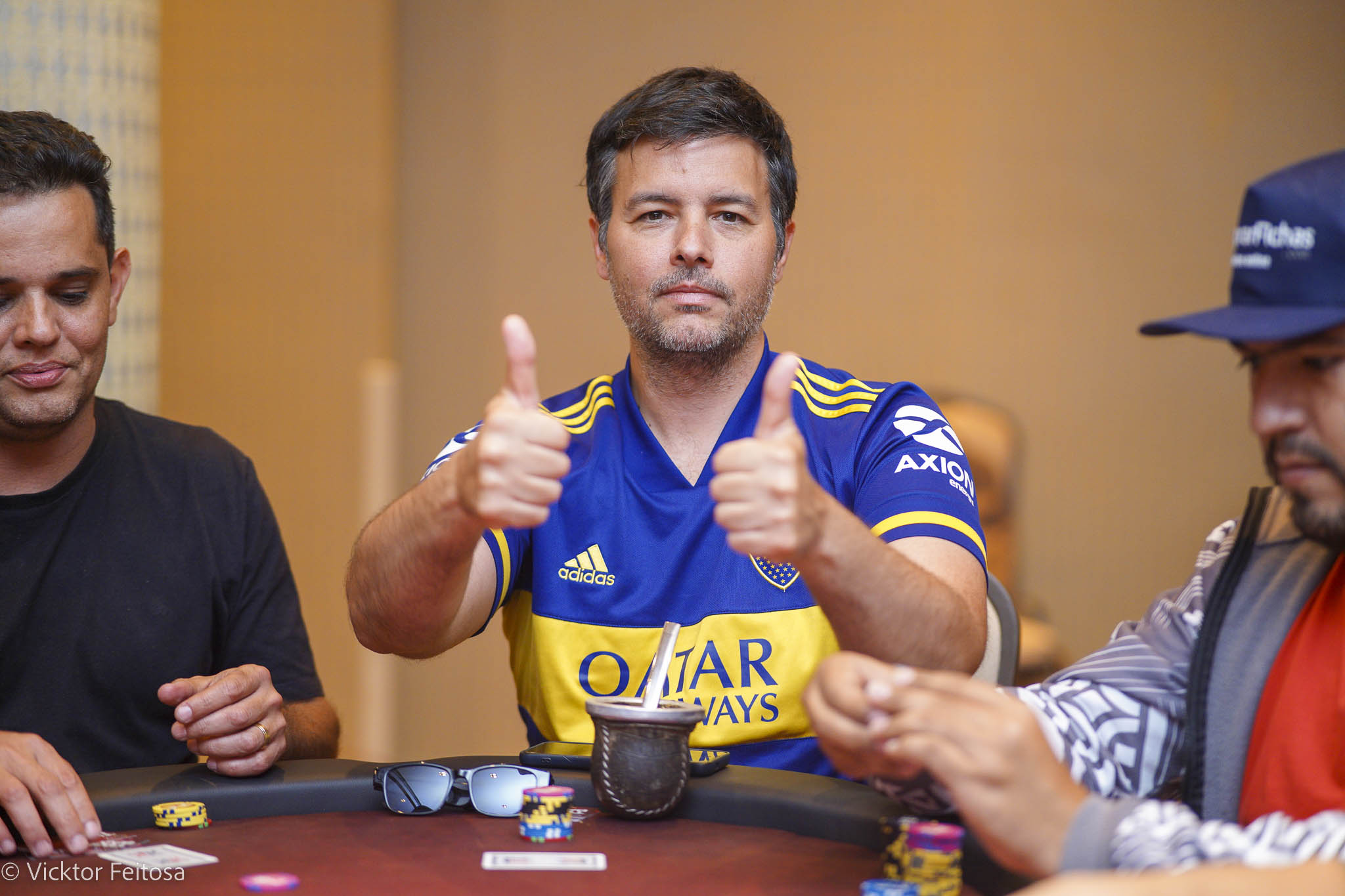 “Uma sensação incrível. Logo na primeira mão do heads-up já teve ação, foi um flip: eu de 99 e ele de AQ. Ele acabou levando e virou o jogo contra mim, fiquei bem short. Depois consegui virar novamente, mas ele puxou um pote enorme e eu caí para cerca de nove blinds. Fui buscando com paciência, passo a passo, consegui uma dobra importante e virei o jogo de novo. Mesmo short em alguns momentos, com a torcida toda aqui, todo mundo gritando, foi simplesmente sensacional, incrível”, disse.