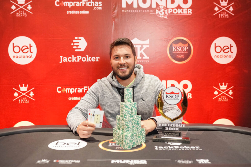 Campeão do KSOP South America no ano passado, ele voltou a brilhar ao superar um field de 73 entradas no torneio de buy-in de R$ 1.000. Pela vitória, Pedro faturou R$ 16.000 e, como já é tradição, soltou o grito de “LETICIA” no salão.
