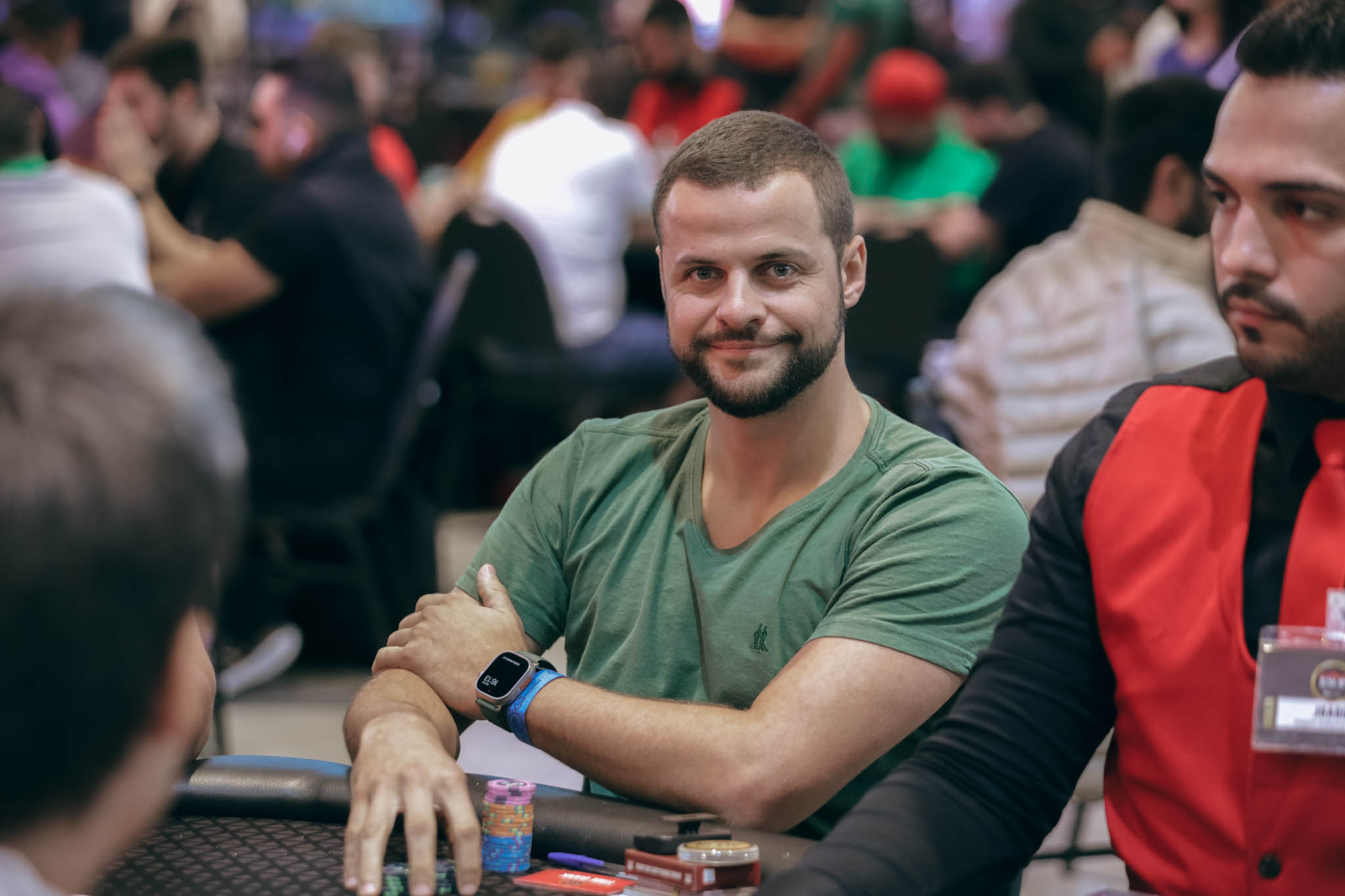 “Uma sensação incrível. Logo na primeira mão do heads-up já teve ação, foi um flip: eu de 99 e ele de AQ. Ele acabou levando e virou o jogo contra mim, fiquei bem short. Depois consegui virar novamente, mas ele puxou um pote enorme e eu caí para cerca de nove blinds. Fui buscando com paciência, passo a passo, consegui uma dobra importante e virei o jogo de novo. Mesmo short em alguns momentos, com a torcida toda aqui, todo mundo gritando, foi simplesmente sensacional, incrível”, disse.