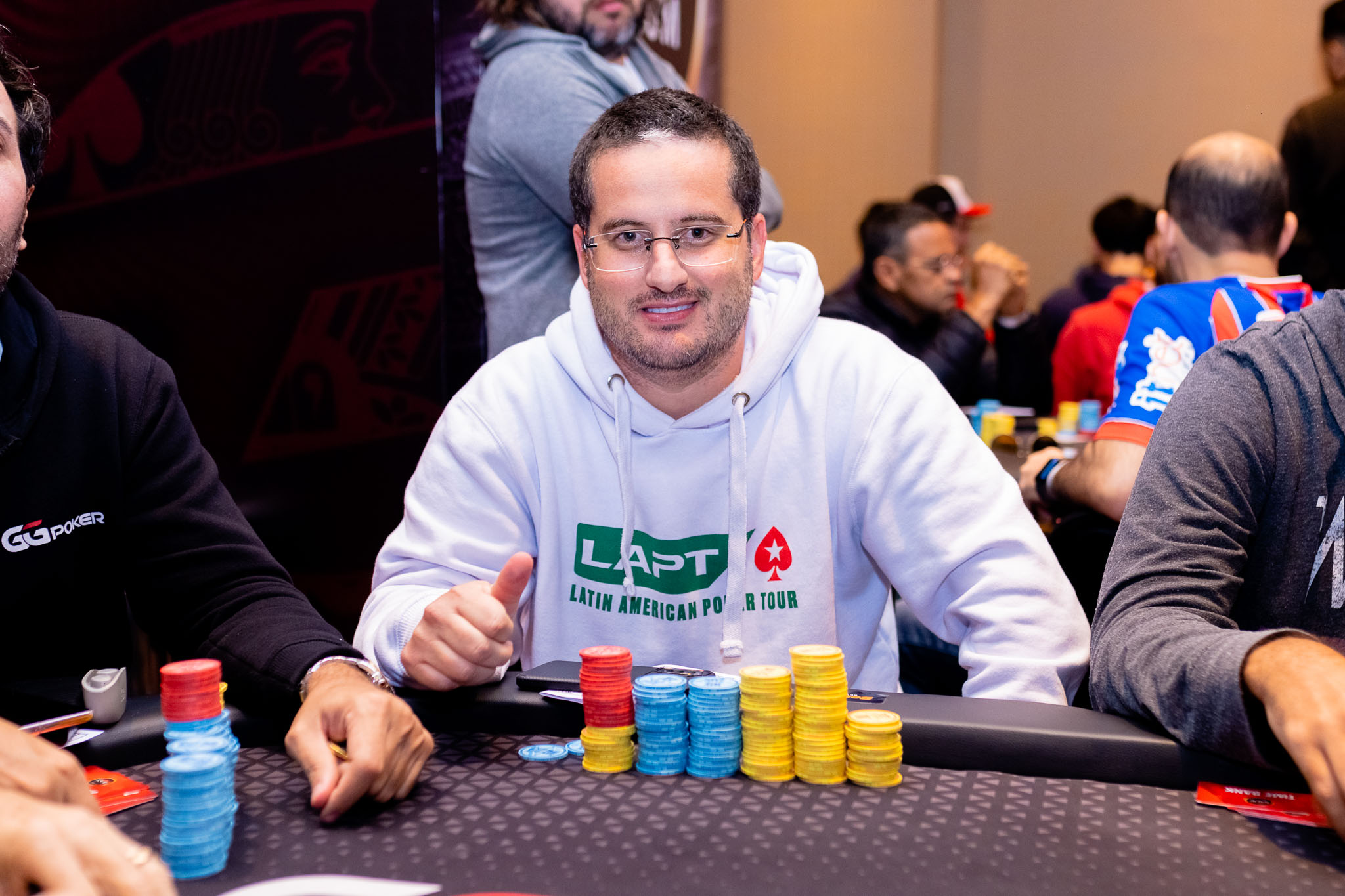 “Uma sensação incrível. Logo na primeira mão do heads-up já teve ação, foi um flip: eu de 99 e ele de AQ. Ele acabou levando e virou o jogo contra mim, fiquei bem short. Depois consegui virar novamente, mas ele puxou um pote enorme e eu caí para cerca de nove blinds. Fui buscando com paciência, passo a passo, consegui uma dobra importante e virei o jogo de novo. Mesmo short em alguns momentos, com a torcida toda aqui, todo mundo gritando, foi simplesmente sensacional, incrível”, disse.