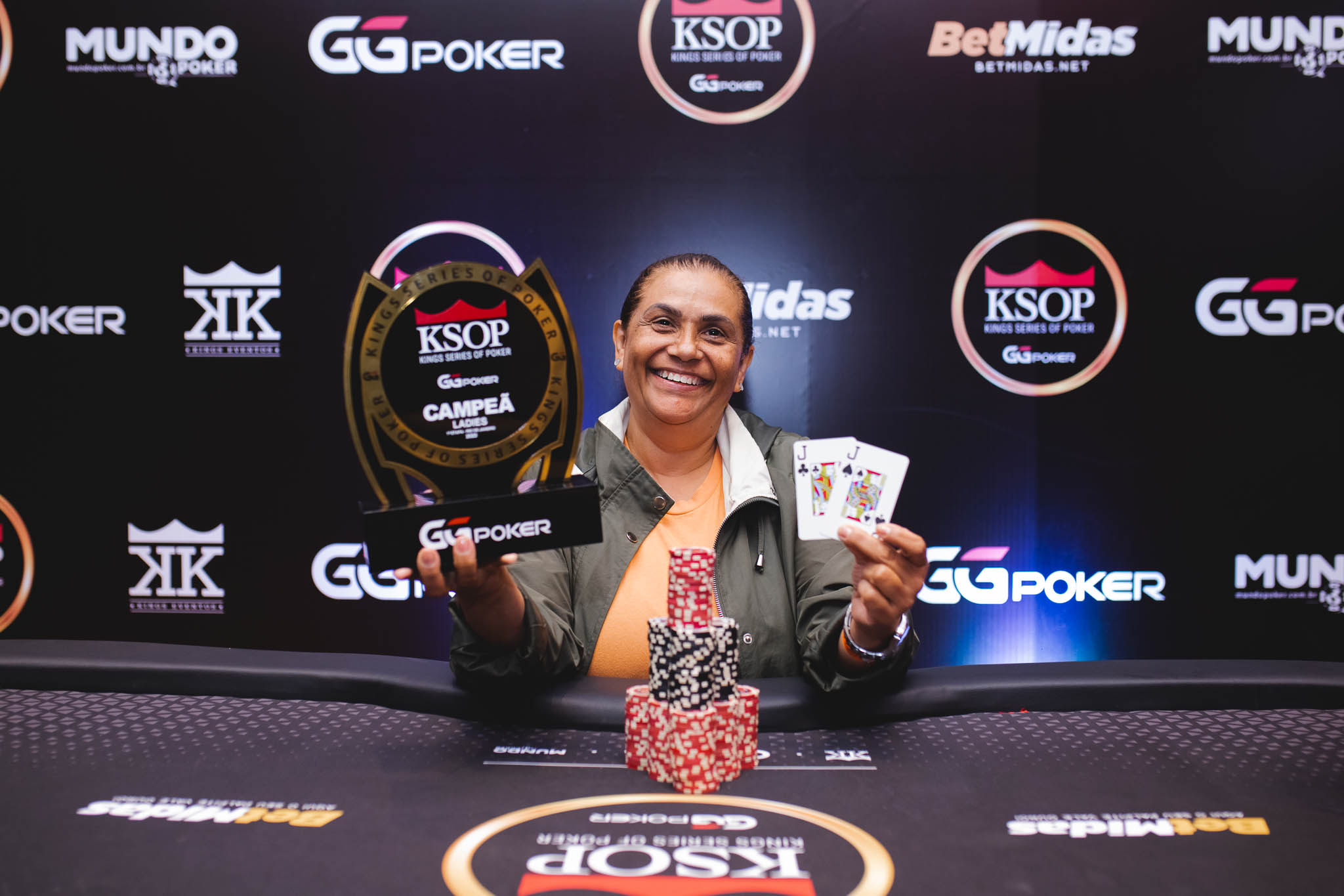 A sexta-feira de KSOP GGPoker foi muito movimentada com três grandes torneios conhecendo seus respectivos campeões. No mais charmoso deles, o Ladies, a mulherada compareceu em peso e, no final das contas, quem fez bonito e conquistou a cravada foi a jogadora Cleide Sobrinho.