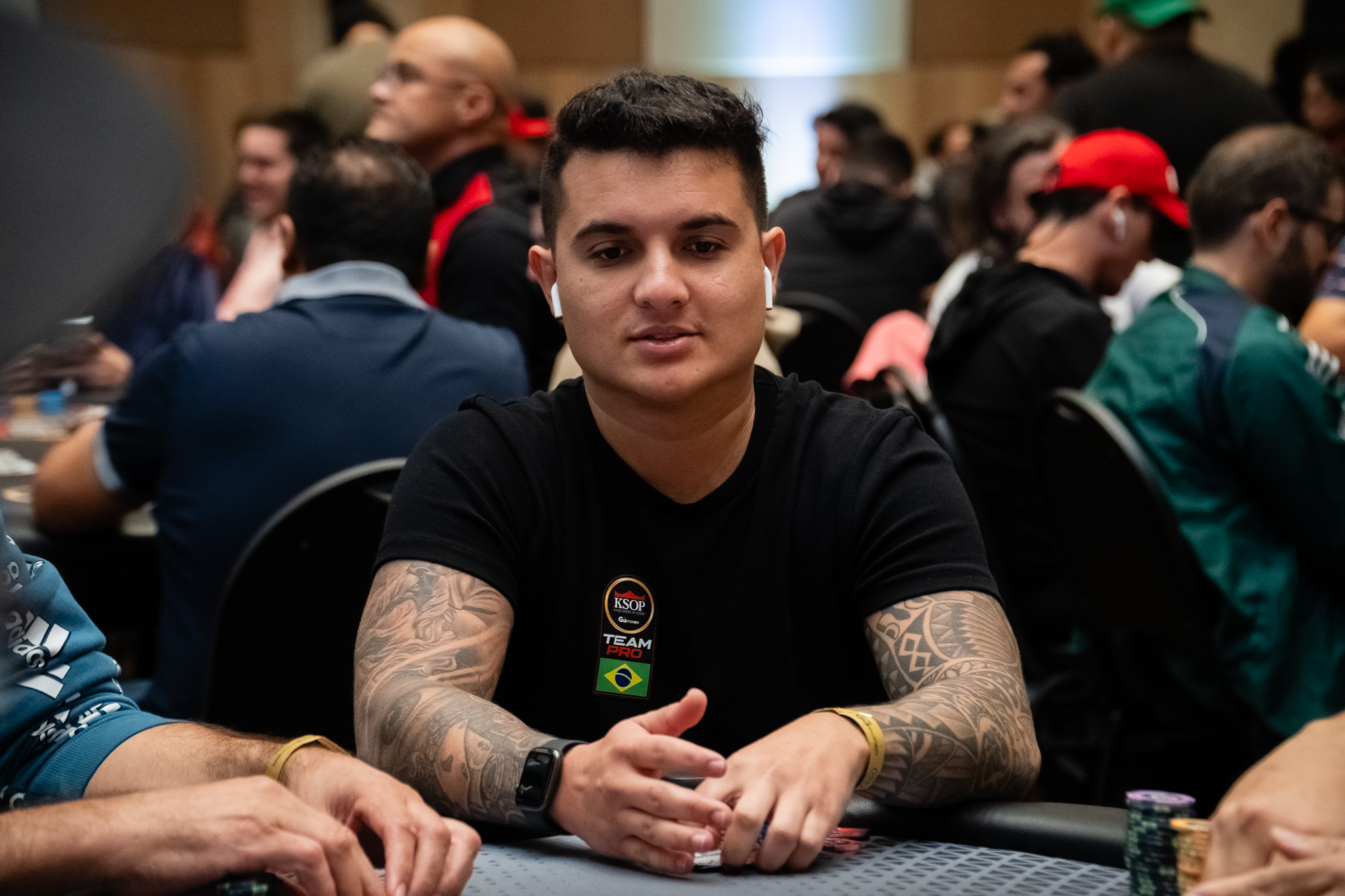 O High Roller Light foi a grande atração do primeiro dia do KSOP GGPoker SP e muitos rostos conhecidos estiveram presentes no field. Entre eles estavam os cariocas Peterson Machado e Yuri Rodrigues, amigos que dividiram a mesma mesa por certo tempo na competição. E é claro que ia ter falinhas entre ambos.