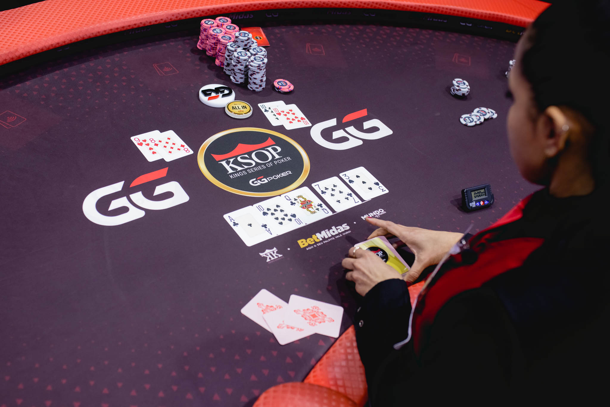 A mão em questão aconteceu quando o Progressive KO, um dos mais importantes da grade do KSOP, estava em hand-for-hand. Marcelo Cartana, com cerca de 25 blinds, acabou indo all-in no pré-flop e Gabriel Reis, que cobria Marcelo em fichas, pagou.