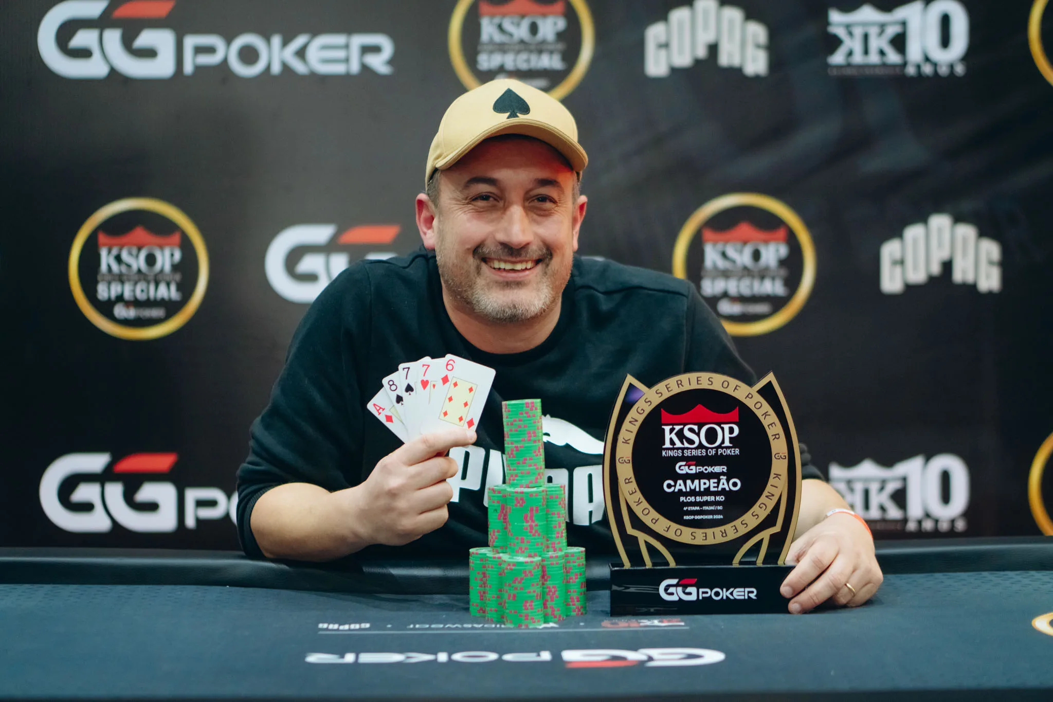 Luis, que conta com bons resultados no online, disse se sentir no ‘melhor momento da carreira’. Ainda assim, faltava a cravada no live; em 2025, ele foi vice-campeão do High Roller 6-Max do KSOP South America. Dessa vez, o maior troféu, conquistado num field de 68 entradas, não ia escapar.