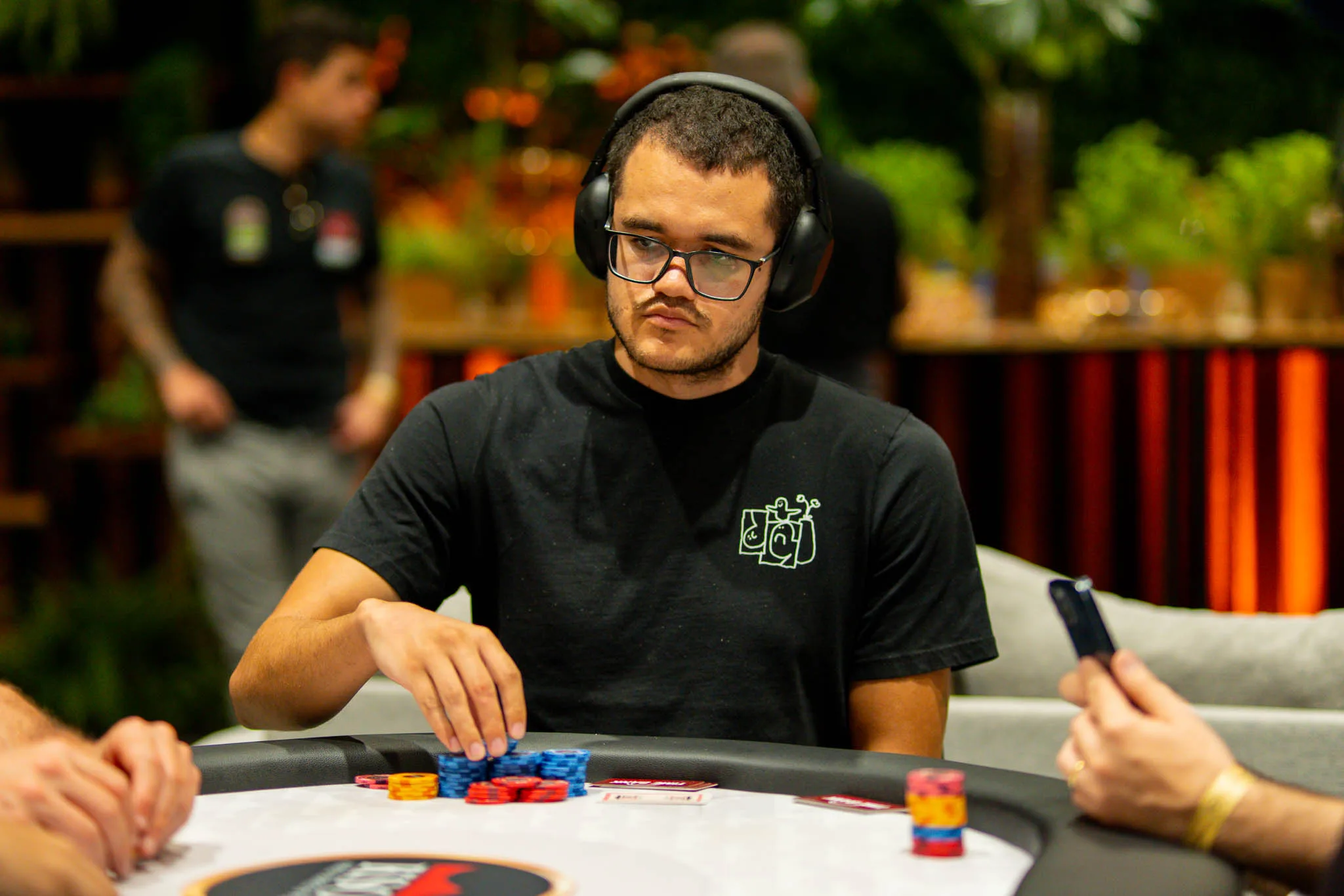 Na ponta do chip count aparece Eduardo Drumond, que teve grande desempenho ao longo do dia e ensacou 635.000 fichas, largando na liderança isolada. Logo atrás, o empresário Manacesar Lopes também brilhou e garantiu 485.000 fichas, seguido de perto pelo argentino Gonzalo Robles, que fechou o dia com 484.000 fichas. Outro nome de destaque é o multicampeão de High Rollers, Carlos Serrano, que segue firme com 447.000 fichas.