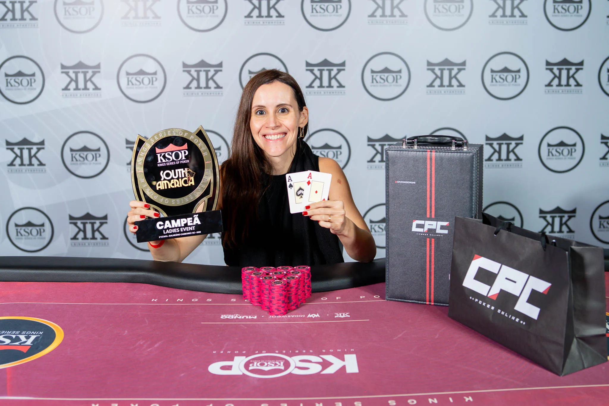 Thaís teve um dia de cinema nas mesas neste domingo e ficou com a cravada no torneio, que reuniu um total de 48 entradas totais no salão do Expocentro. Pelo título, ela levou o prêmio de R$ 15.000, a primeira vez em que ela vence um torneio no KSOP.